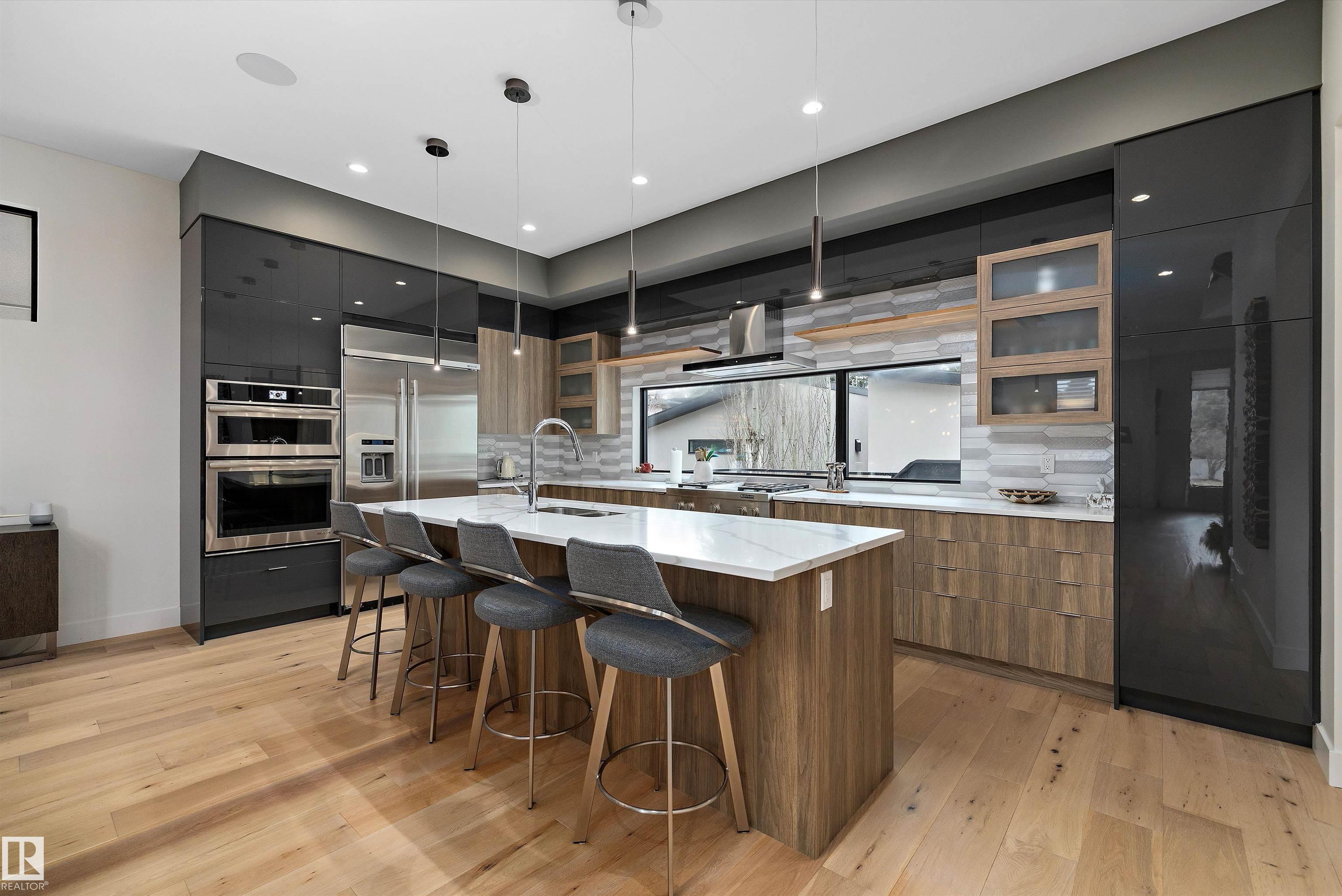 Experience modern luxury in the heart of Edmonton. Step into a masterpiece of contemporary design with this stunning in-fill home. Nestled in a mature and much sought after neighbourhood, this home offers the perfect blend of elegance, functionality and location. Boasting soaring ceilings, expansive windows and a layout that maximizes natural light. The gourmet kitchen features quartz countertops, a spacious island and top of the line Jen-Air stainless steel appliances. The primary bedroom includes a spa-like ensuite and walk-in closet while additional bedrooms offer ample space and convenience. The fully finished basement is perfect for entertaining, with a trendy wine room, additional bedroom, bathroom and versatile family room. The roof top patio is the perfect retreat with sweeping views of the river valley while the rear raised deck is an entertainment hub for family and friend get togethers.