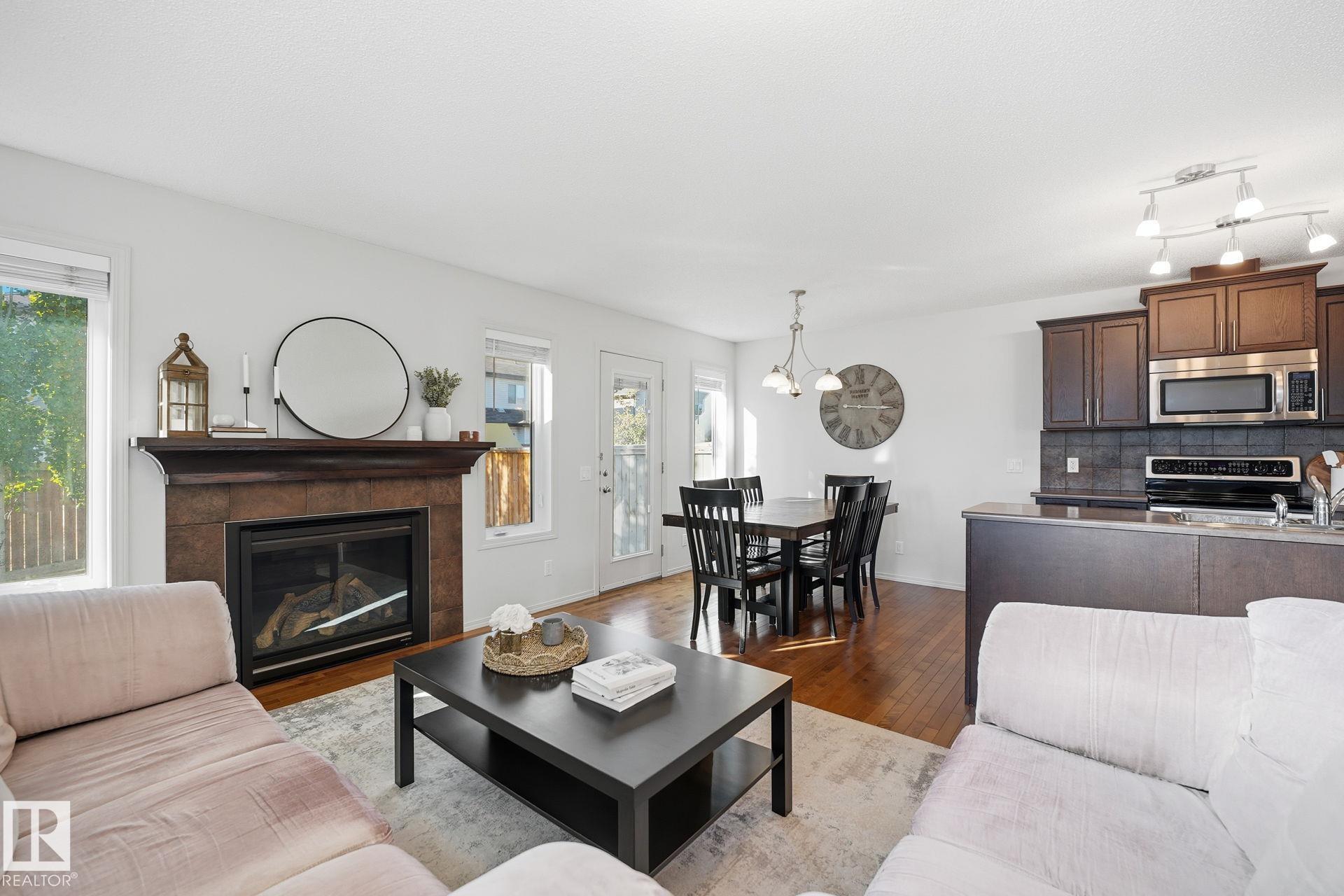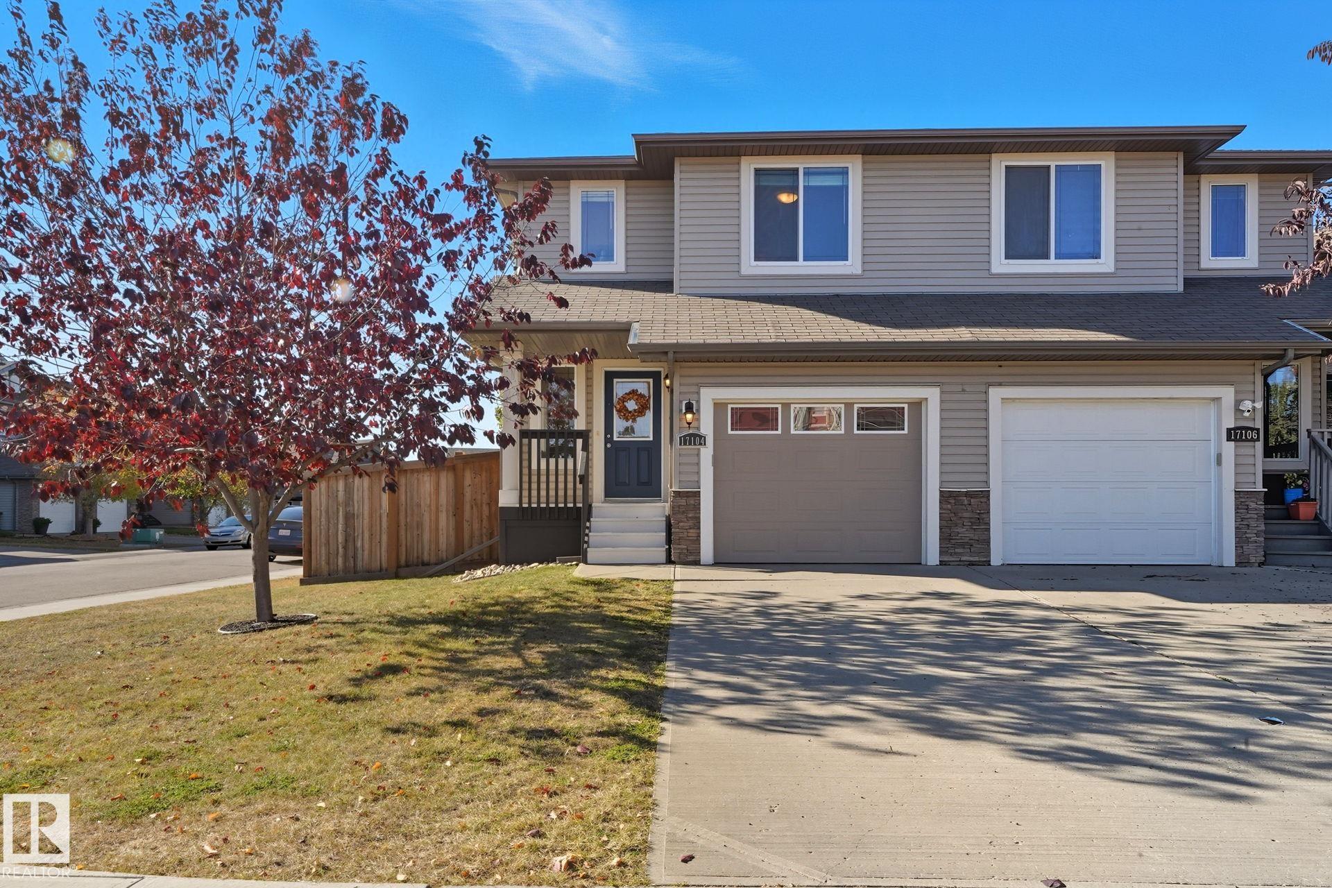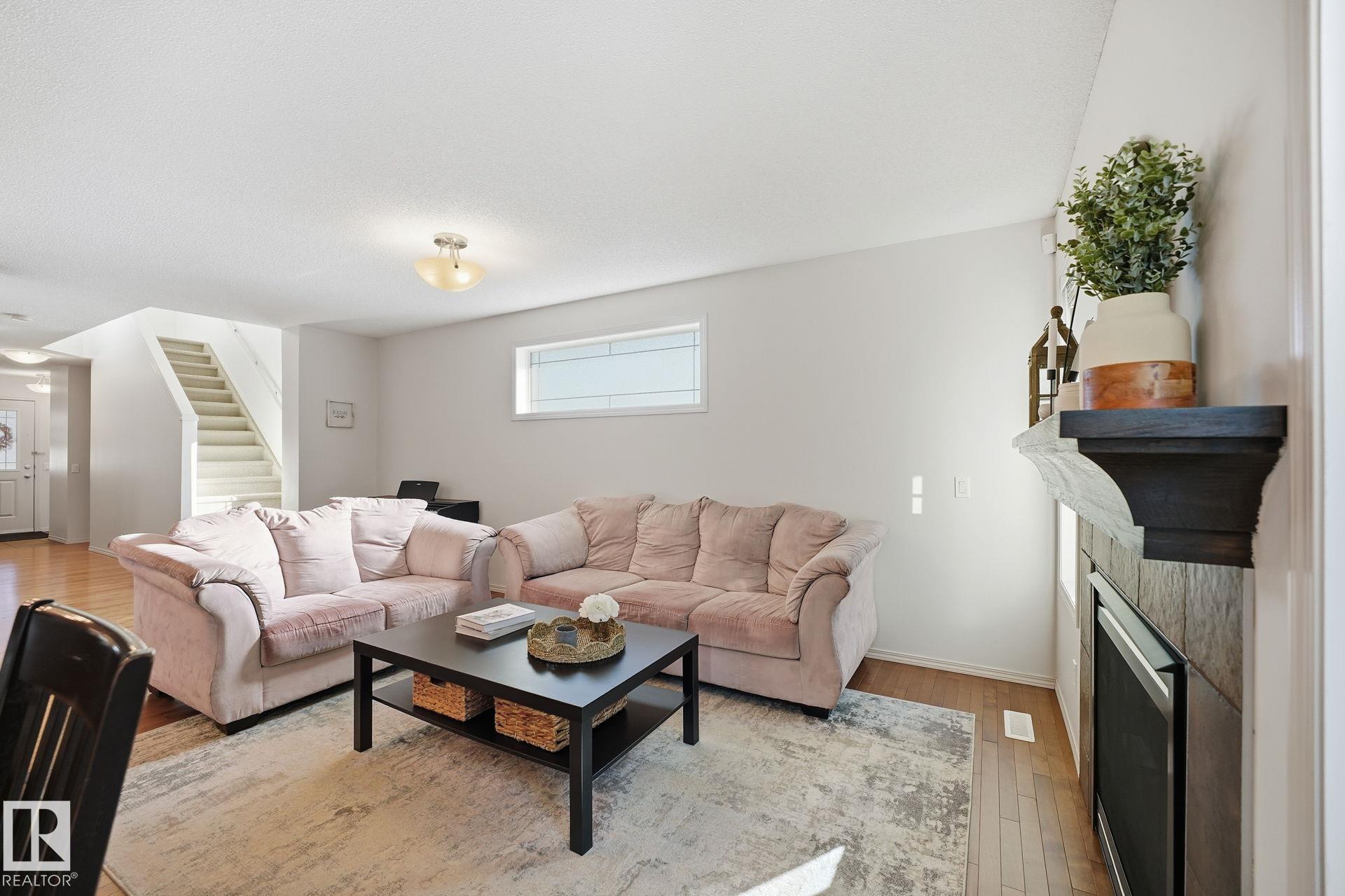 Welcome to this immaculate, move-in-ready half duplex with no condo fees in one of Northwest Edmonton?s most desirable communities, Rapperswill. Offering 3 bedrooms, 2.5 bathrooms, and nearly 1,600 sq. ft. of bright and comfortable living space, this home features an open main floor with large windows and a cozy gas fireplace that creates a warm, inviting atmosphere. The kitchen provides plenty of storage and overlooks the spacious west-facing backyard that is perfect for enjoying the evening sun or weekend BBQs. Upstairs, you?ll find convenient top-floor laundry, two generous bedrooms, and a spacious primary suite complete with a walk-in closet and private ensuite. Set on a large, tree-lined corner lot with an extended driveway, this property offers exceptional value. Ideally located just minutes away from schools, amenities, and the Anthony Henday drive, this home is perfect for first time home buyers, young families or anyone looking for a convenient lifestyle.