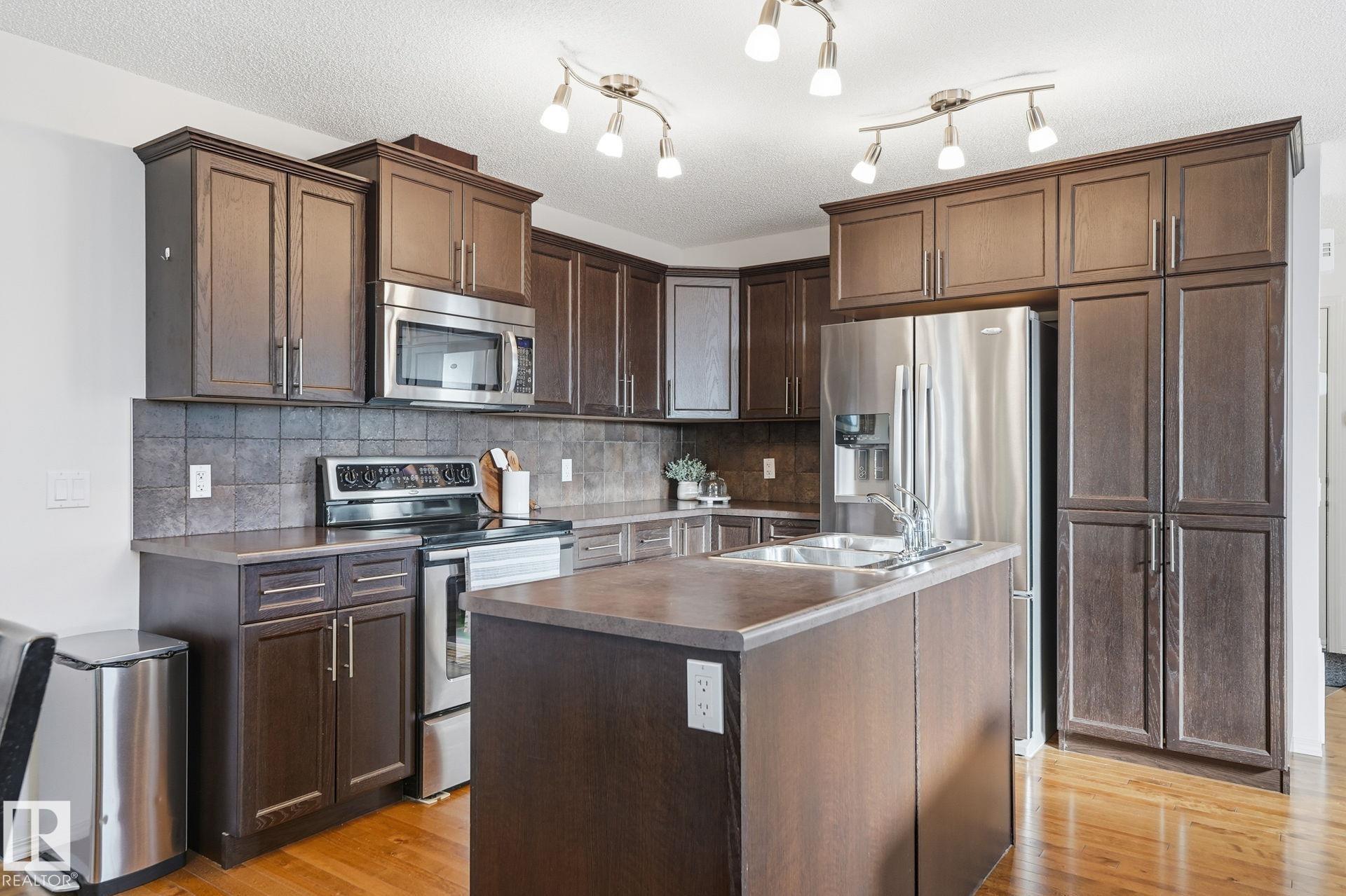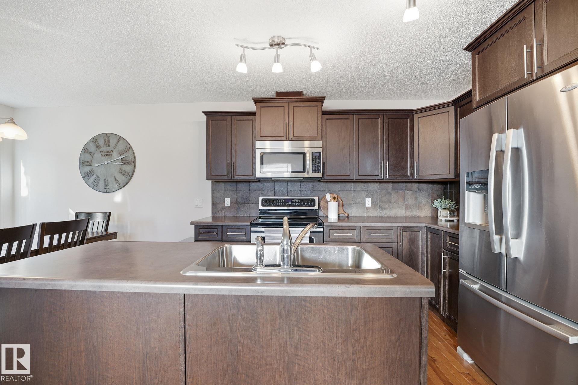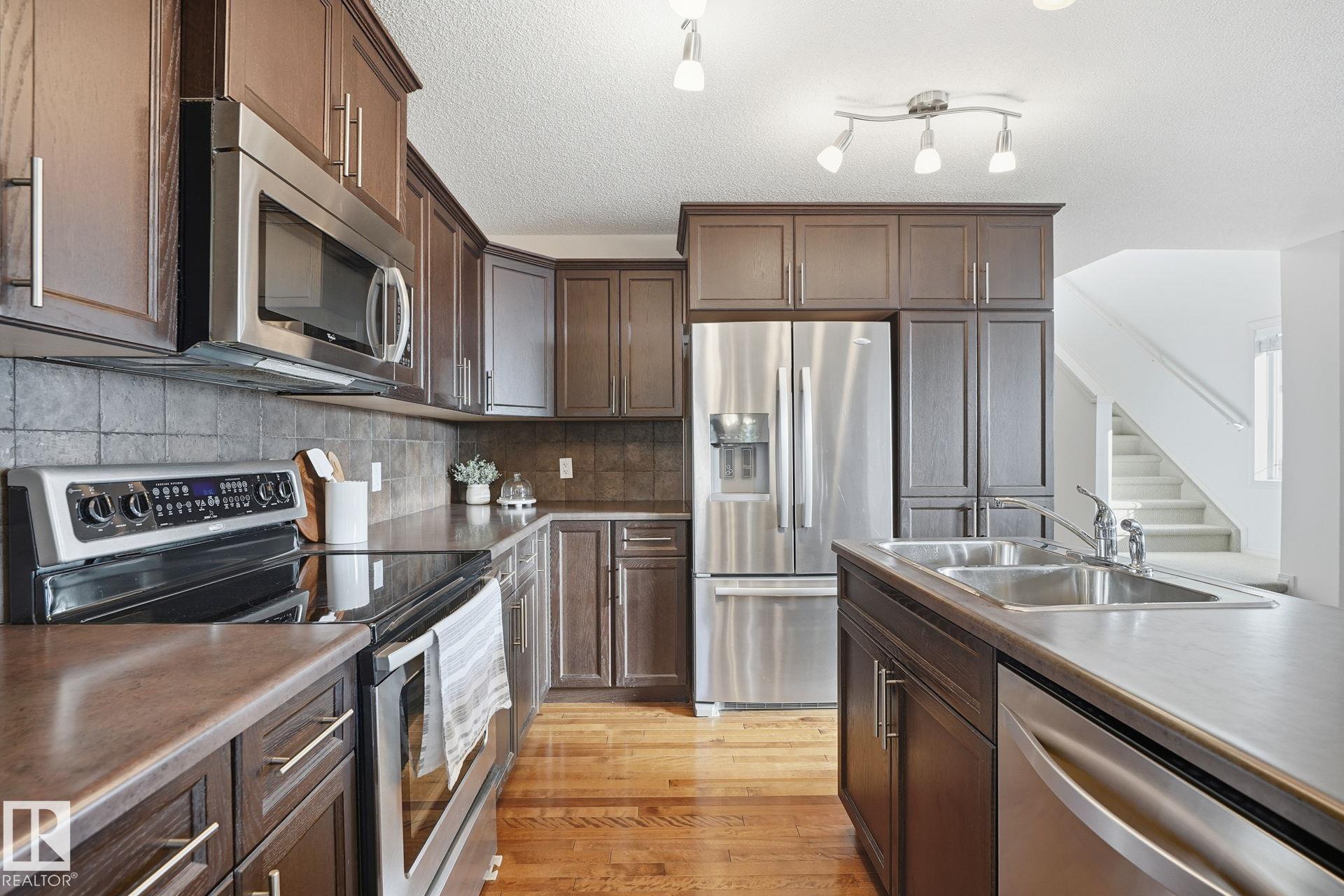 Welcome to this immaculate, move-in-ready half duplex with no condo fees in one of Northwest Edmonton?s most desirable communities, Rapperswill. Offering 3 bedrooms, 2.5 bathrooms, and nearly 1,600 sq. ft. of bright and comfortable living space, this home features an open main floor with large windows and a cozy gas fireplace that creates a warm, inviting atmosphere. The kitchen provides plenty of storage and overlooks the spacious west-facing backyard that is perfect for enjoying the evening sun or weekend BBQs. Upstairs, you?ll find convenient top-floor laundry, two generous bedrooms, and a spacious primary suite complete with a walk-in closet and private ensuite. Set on a large, tree-lined corner lot with an extended driveway, this property offers exceptional value. Ideally located just minutes away from schools, amenities, and the Anthony Henday drive, this home is perfect for first time home buyers, young families or anyone looking for a convenient lifestyle.
