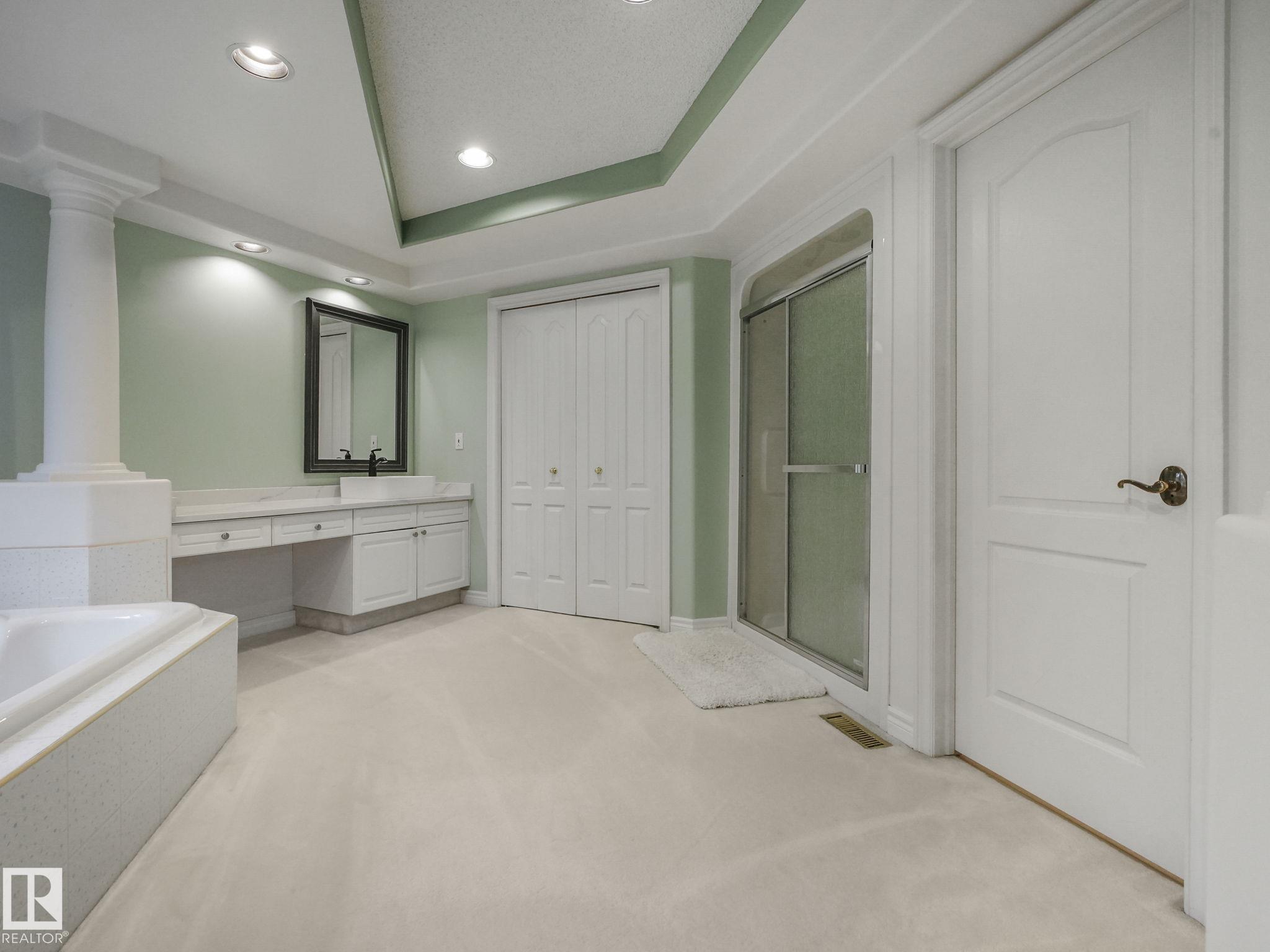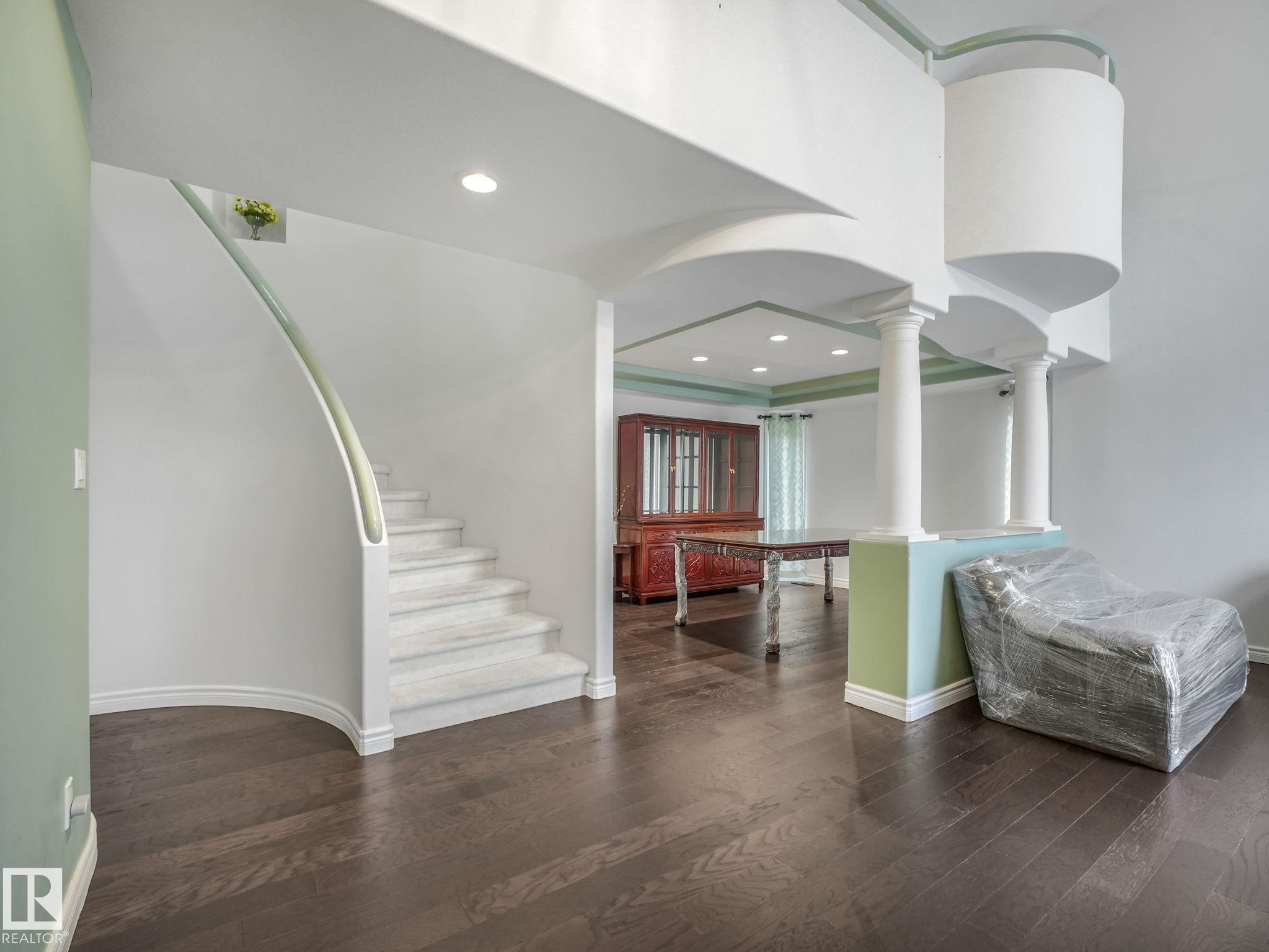 Immaculate, meticulously maintained, former Landmark showhome. Fantastic location on quiet cul de sac in desireable Bulyea Heights. Steps from dry pond area and walking trails. Large pie shaped lot backs onto treed walking path. New concrete driveway. Main level flows in circular pattern: living room, dining room, kitchen, eating area, family room, den or office, half bath and laundry room has added a new shower stall. Upstairs is spacious master suite with generous sized 5 pc ensuite & W/I closet. Loft acts like a bonus room for more functional living space. Big windows throughout add lots of natural light. Developed recreation room in basemet. Architectural features like archways, curved stairwell, art niche, cathedral ceiling, french doors and more!. Interior of the property has been upgraded like windows, flooring, paint, kitchen counter top...etc. Must be seen to appreciated. List of upgrades inside the property. Also an insulated heated garage.