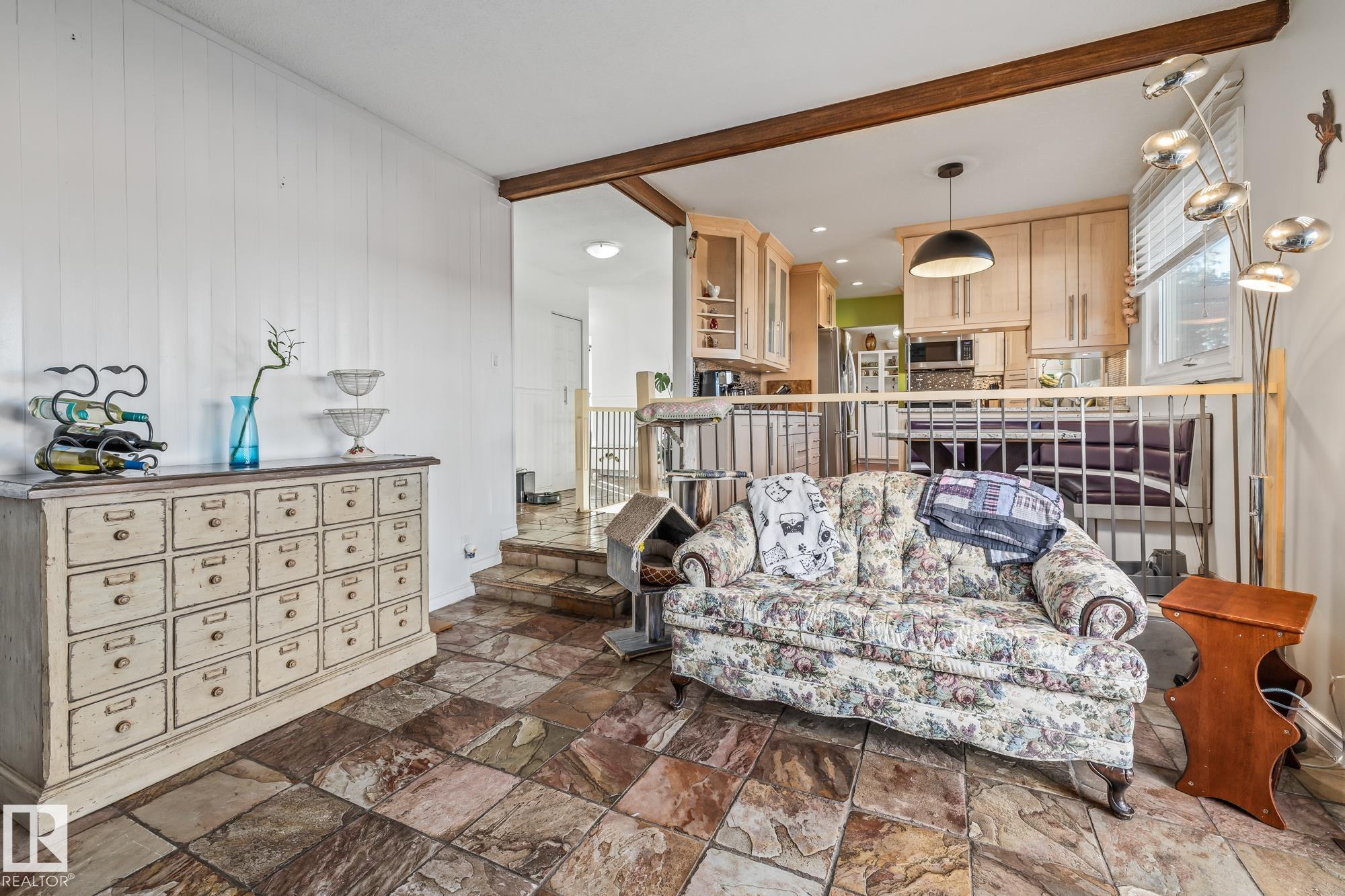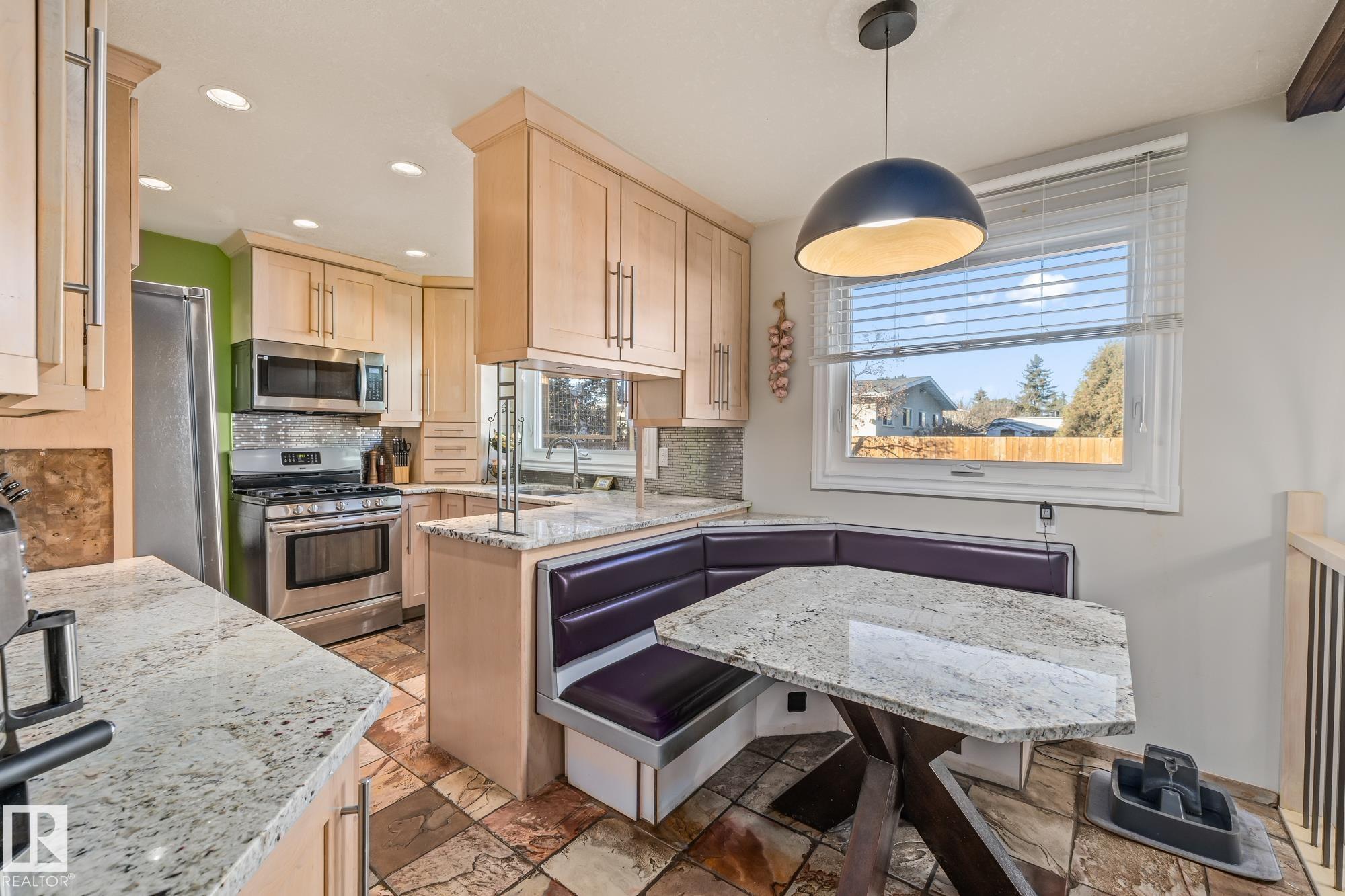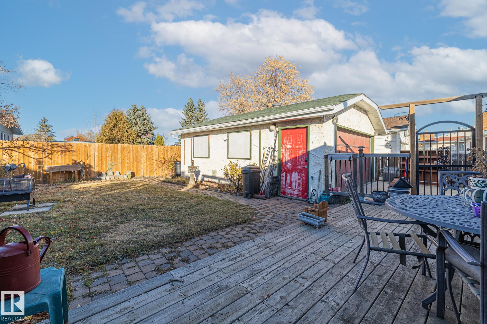 This beautifully updated 4-bedroom, 2.5-bath bungalow in Belmont blends 1970s character with modern comfort on a large, private lot. Inside, you?ll find a bright and functional layout with a central kitchen featuring undercabinet lighting, plenty of counter space, and an easy flow to the living and dining areas. Major upgrades include triple-pane windows, new electrical with 100-amp service (2024), a high-efficiency furnace, hot water tank (2024), and newer eaves with a 12-year-old roof for peace of mind. The finished basement adds extra living space with a full bath, bedroom, and room for family entertainment or guests. Outside, enjoy a spacious deck, huge yard, and an oversized double detached garage. Located near schools, parks, and playgrounds, this move-in ready home offers a rare combination of space, updates, and convenience in a mature, family-friendly Edmonton neighbourhood.