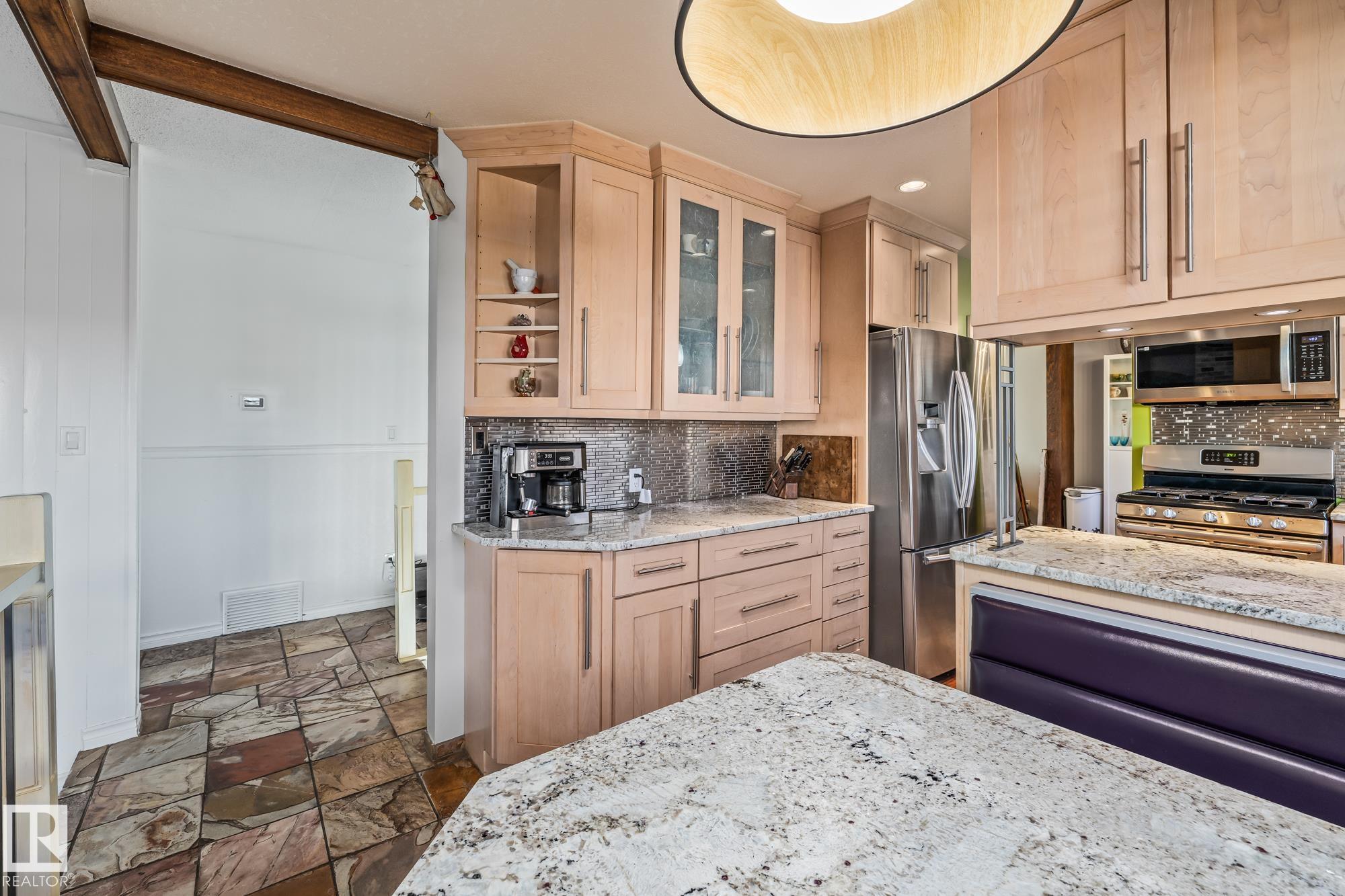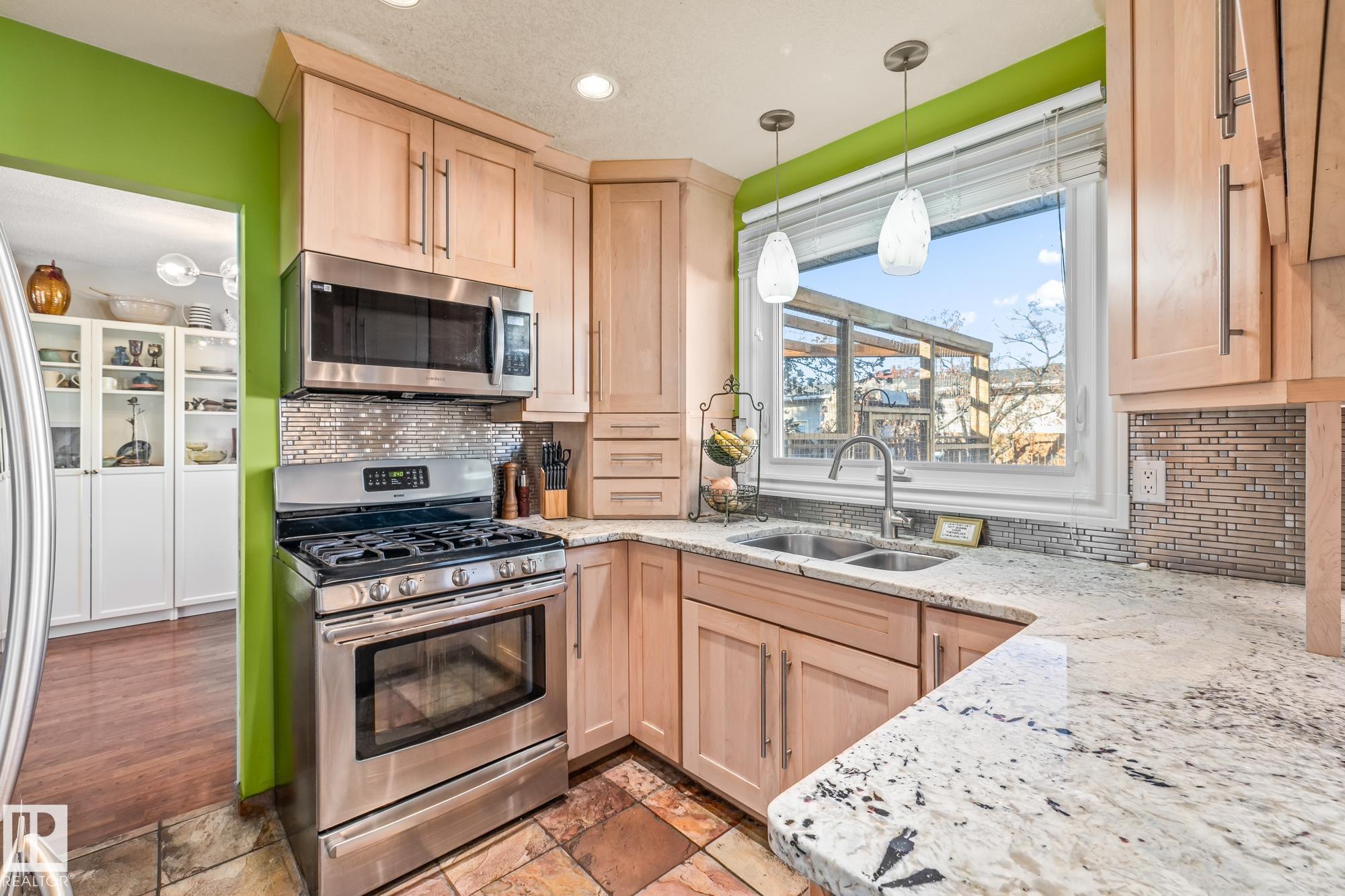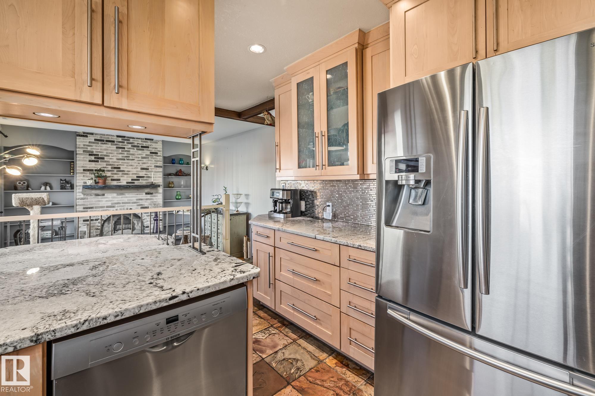 This beautifully updated 4-bedroom, 2.5-bath bungalow in Belmont blends 1970s character with modern comfort on a large, private lot. Inside, you?ll find a bright and functional layout with a central kitchen featuring undercabinet lighting, plenty of counter space, and an easy flow to the living and dining areas. Major upgrades include triple-pane windows, new electrical with 100-amp service (2024), a high-efficiency furnace, hot water tank (2024), and newer eaves with a 12-year-old roof for peace of mind. The finished basement adds extra living space with a full bath, bedroom, and room for family entertainment or guests. Outside, enjoy a spacious deck, huge yard, and an oversized double detached garage. Located near schools, parks, and playgrounds, this move-in ready home offers a rare combination of space, updates, and convenience in a mature, family-friendly Edmonton neighbourhood.