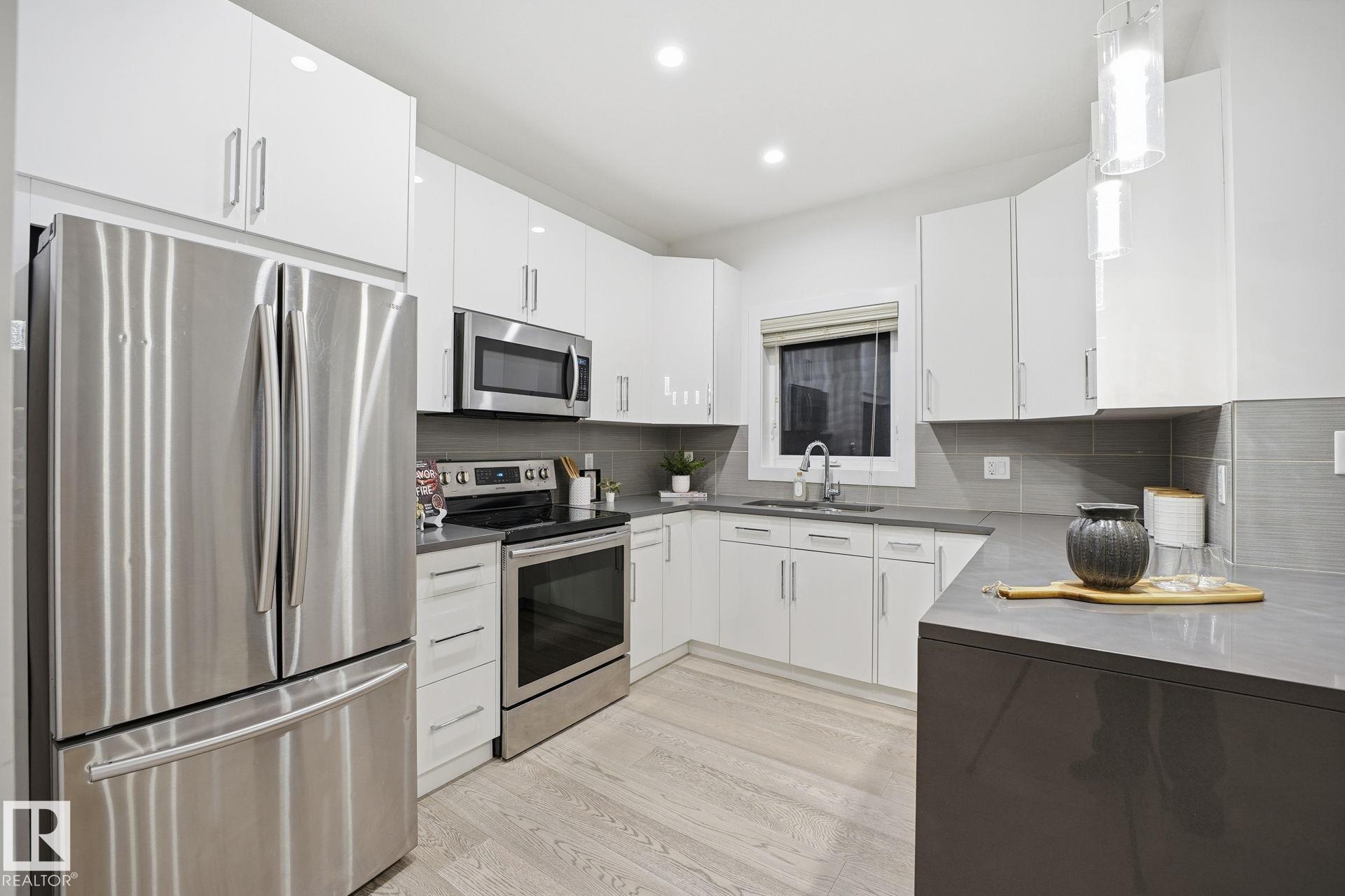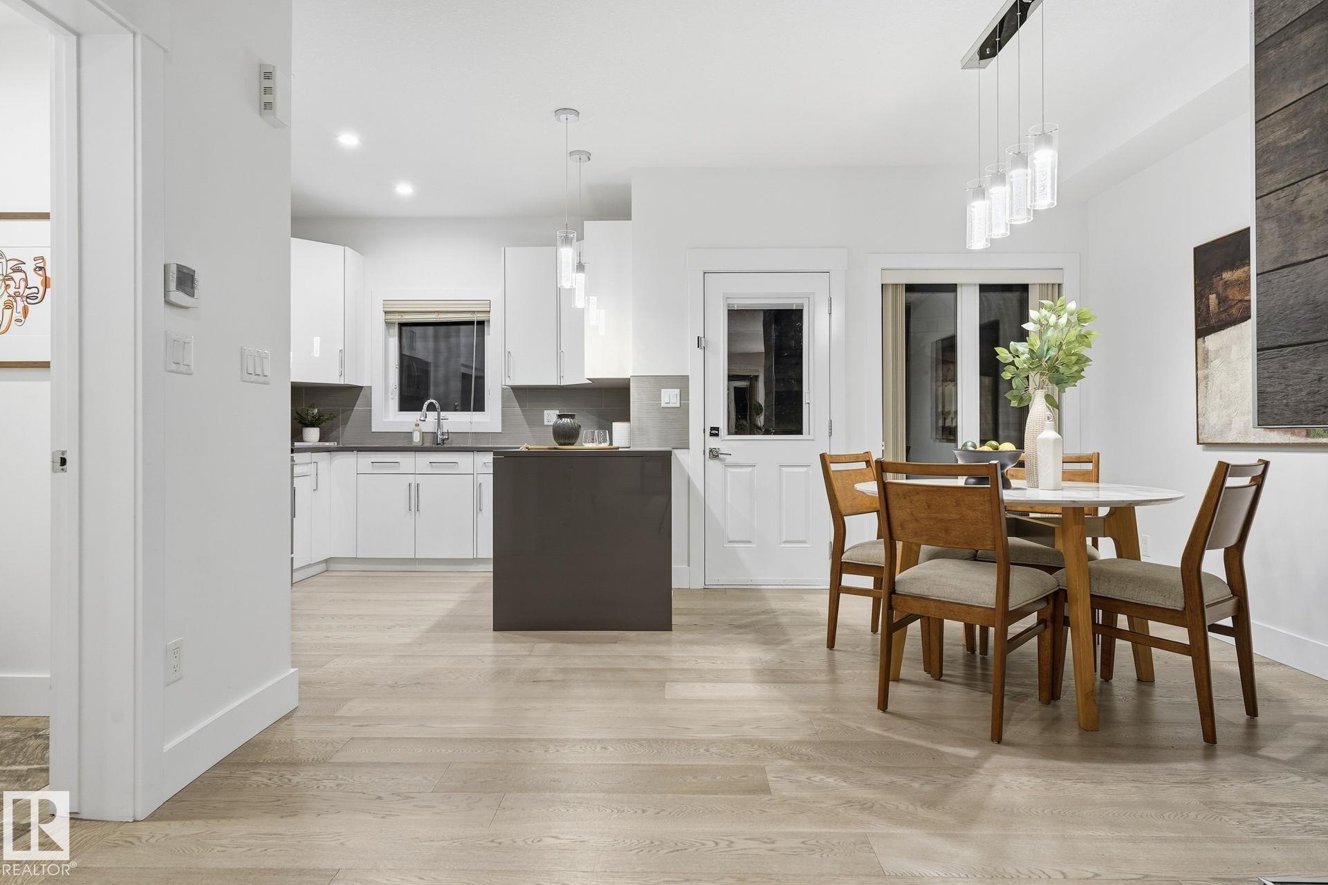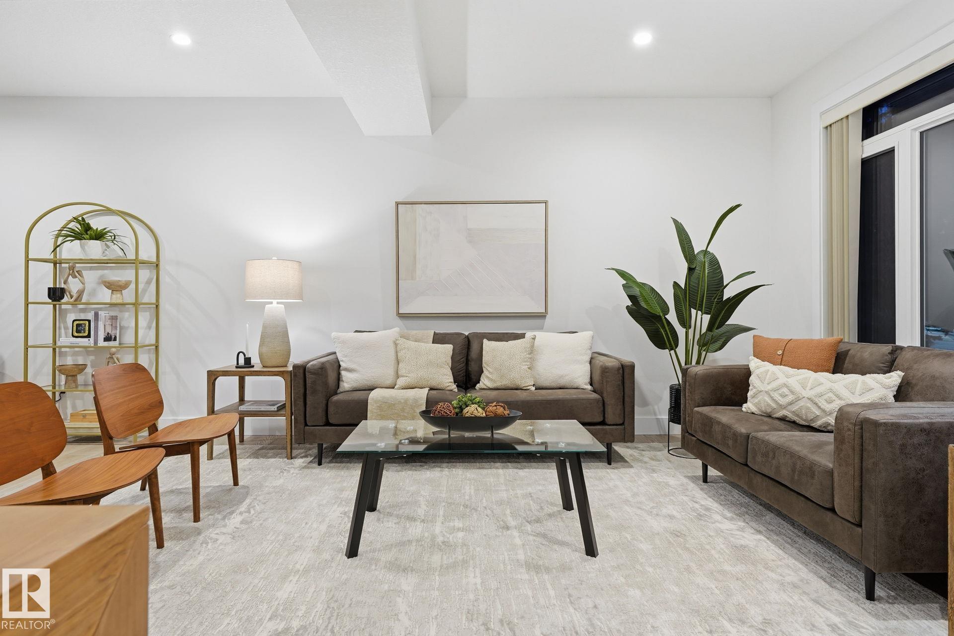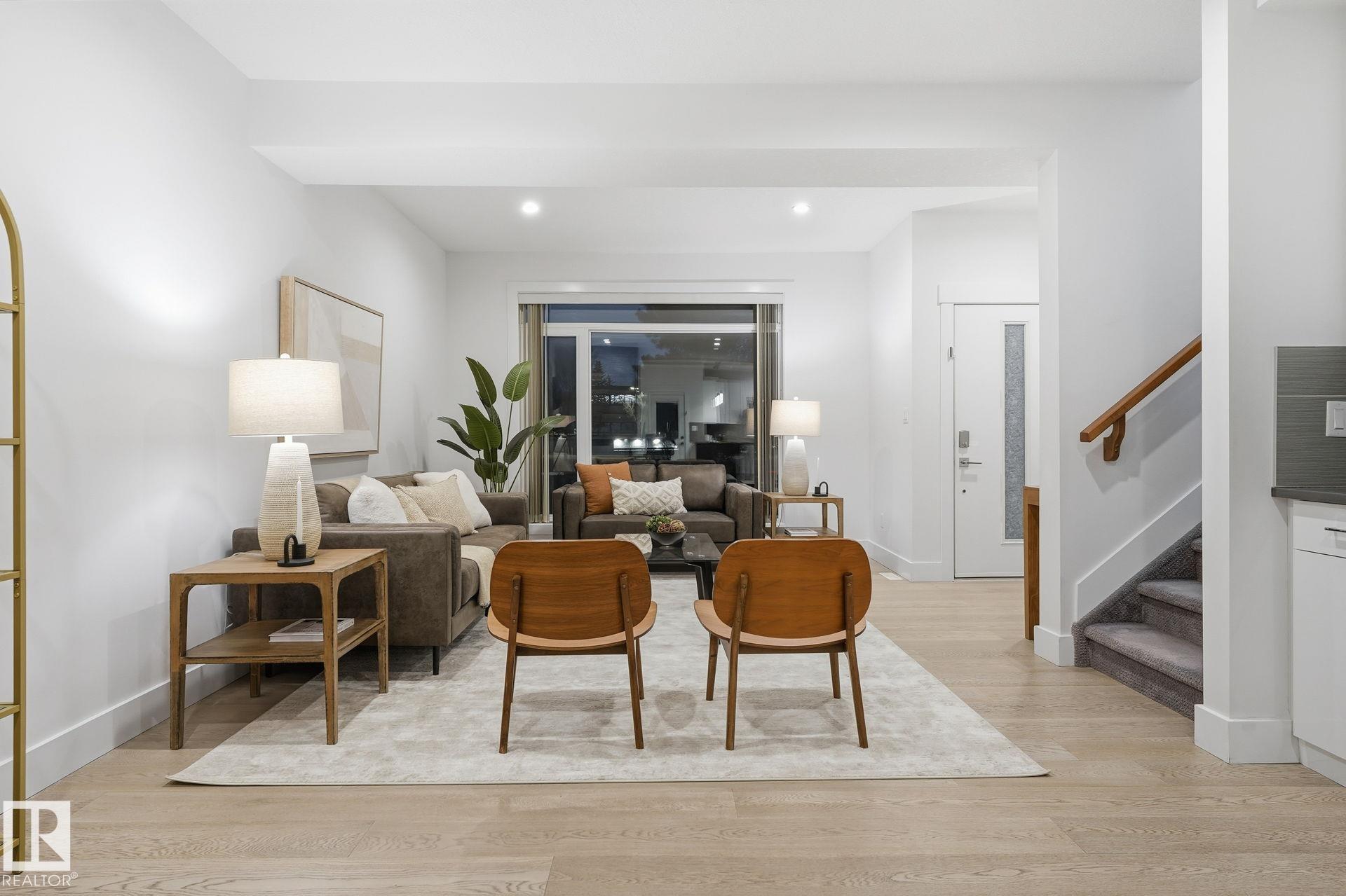 BELGRAVIA infill just steps to the River Valley, U of A, and only a few hundred metres to Belgravia LRT (next stop: University Station). This 2-storey (4 bed 4bath) Half-Duplex features ACRYLIC STUCCO and LUX PANELS with LOW-MAINTENANCE LANDSCAPING front and back, including ARTIFICIAL TURF. Inside, enjoy HARDWOOD flooring, QUARTZ kitchen counters, bar area, and a 3-sided gas fireplace. The second floor offers a SPACIOUS PRIMARY bedroom with large walk-in closet, DUAL-SINK ENSUITE, and PRIVATE BALCONY. Two additional bedrooms, upstairs laundry, and a 4-pc bath complete the 2nd level. The FULLY FINISHED BASEMENT includes a large family room, 4th bedroom, full bath. Builder included a SEPARATE ENTRANCE and rough-ins for a FUTURE LEGAL SUITE POTENTIAL offering great revenue potential (if desired). DOUBLE GARAGE, modern exterior, and walkable location close to cafés, transit, parks, and Edmonton?s core amenities make this a turnkey option for professionals, families, or investors alike.