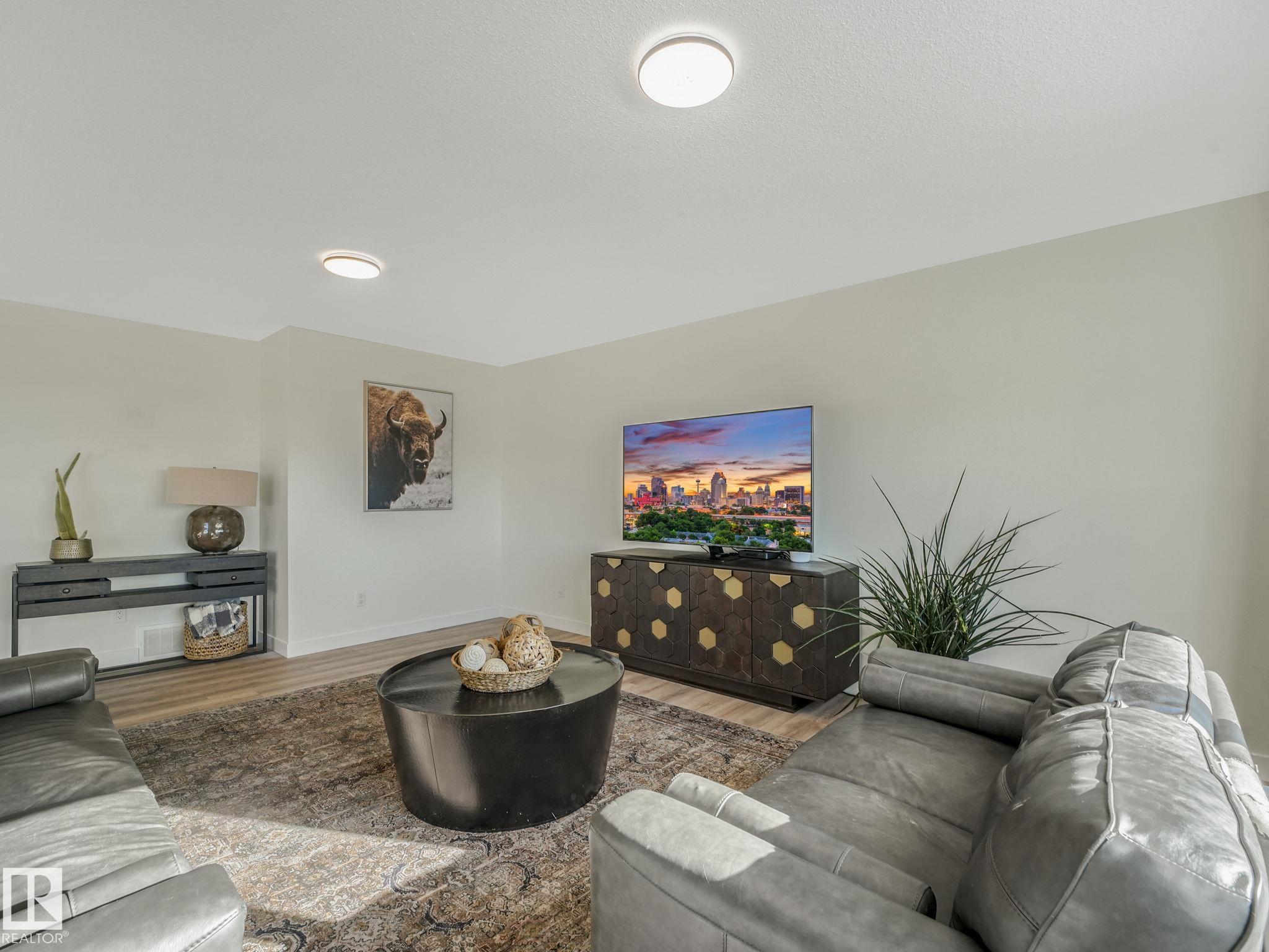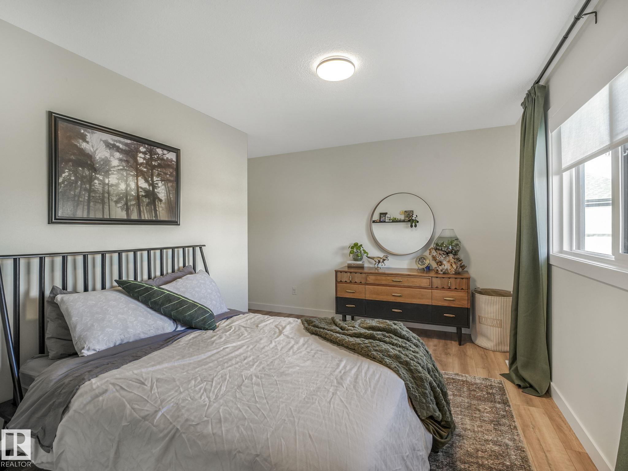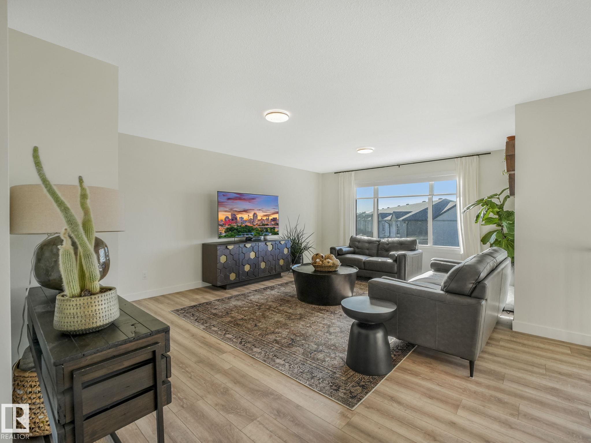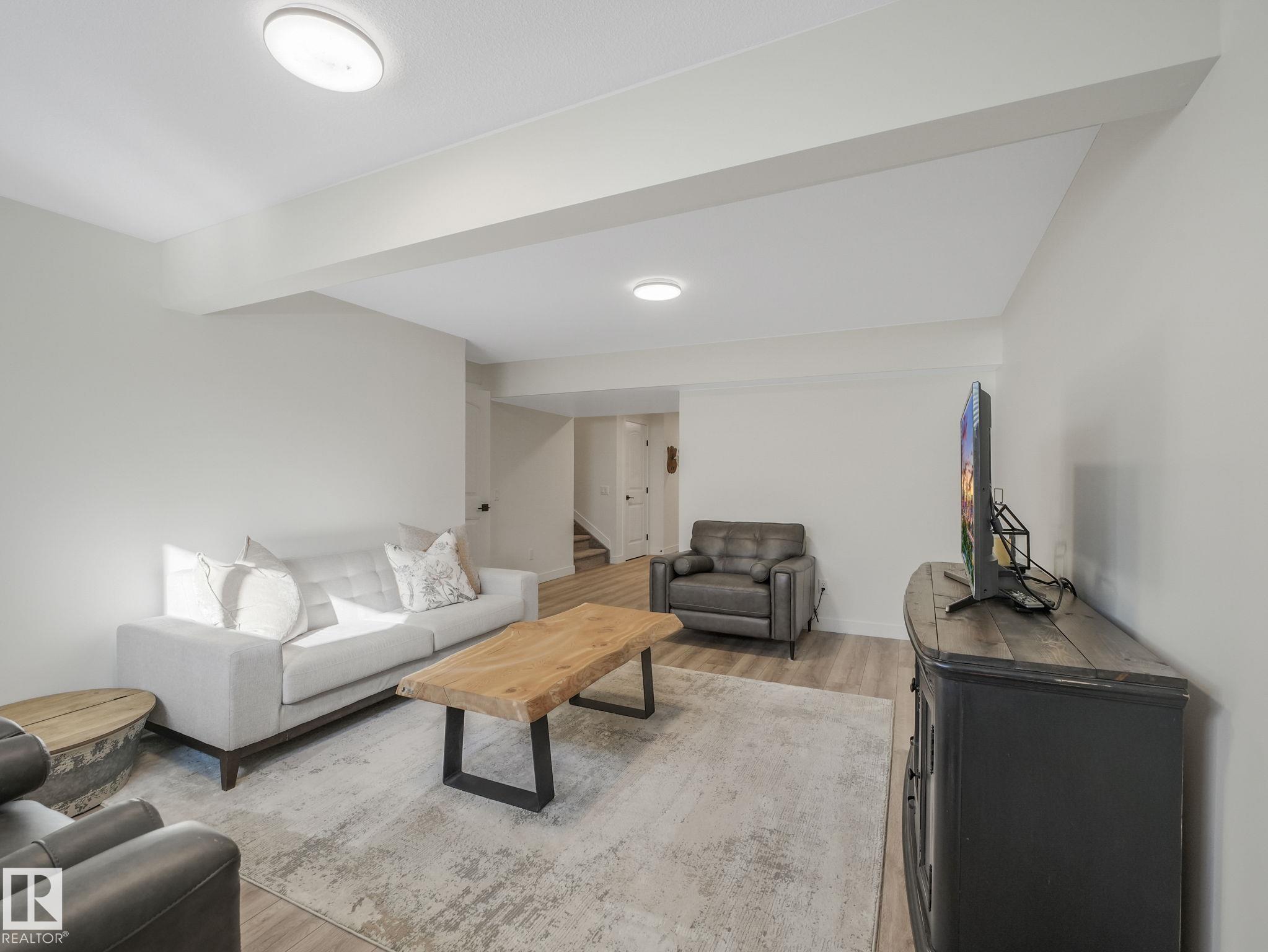 Welcome to Beaumont! This custom-built & fully finished home boasts almost 2800 sq ft over 3 upper levels on a massive 9,000 sq ft pie lot! This 5 bed, 3.5 bath beauty offers exceptional design & space. The primary suite occupies its own private third level, featuring a spa-inspired ensuite & walk-in closet and plenty of living space to make this area your own. The main level boasts an open-concept layout with premium appliances, luxury Alberta-made laminate flooring, air conditioning & a cozy gas fireplace with custom mantel. The fully finished basement adds even more living space for family or guests which includes the 5th bedroom, family room (close to 800 additional square feet). Outside, enjoy a $50,000 professionally landscaped yard with new deck, garden beds, flower boxes & over 2 dozen fruit trees?your own backyard retreat! The extended garage provides ample storage. Situated on a quiet street near parks, walking paths, schools & amenities?this is the one you?ve been waiting for. Welcome home!