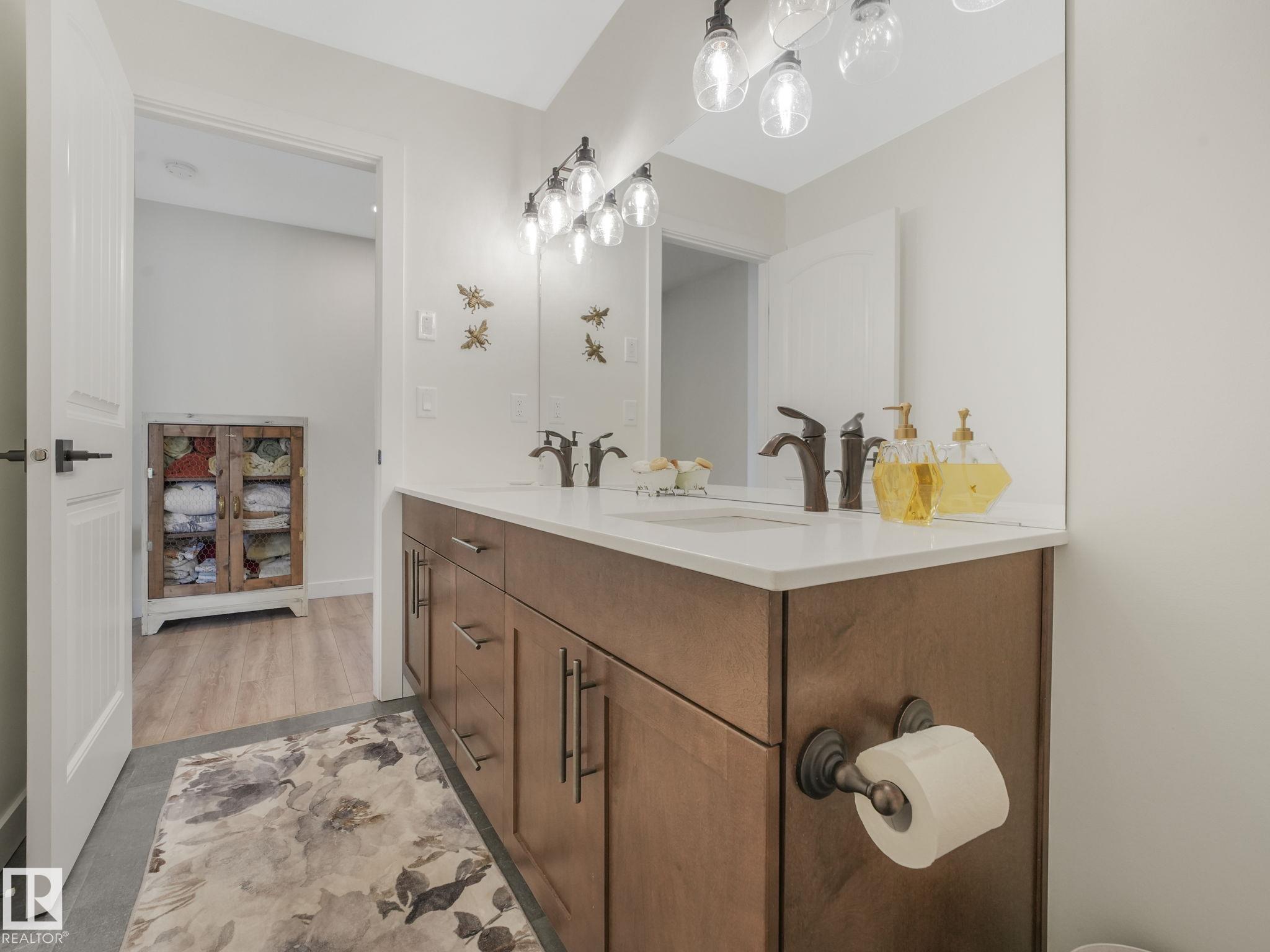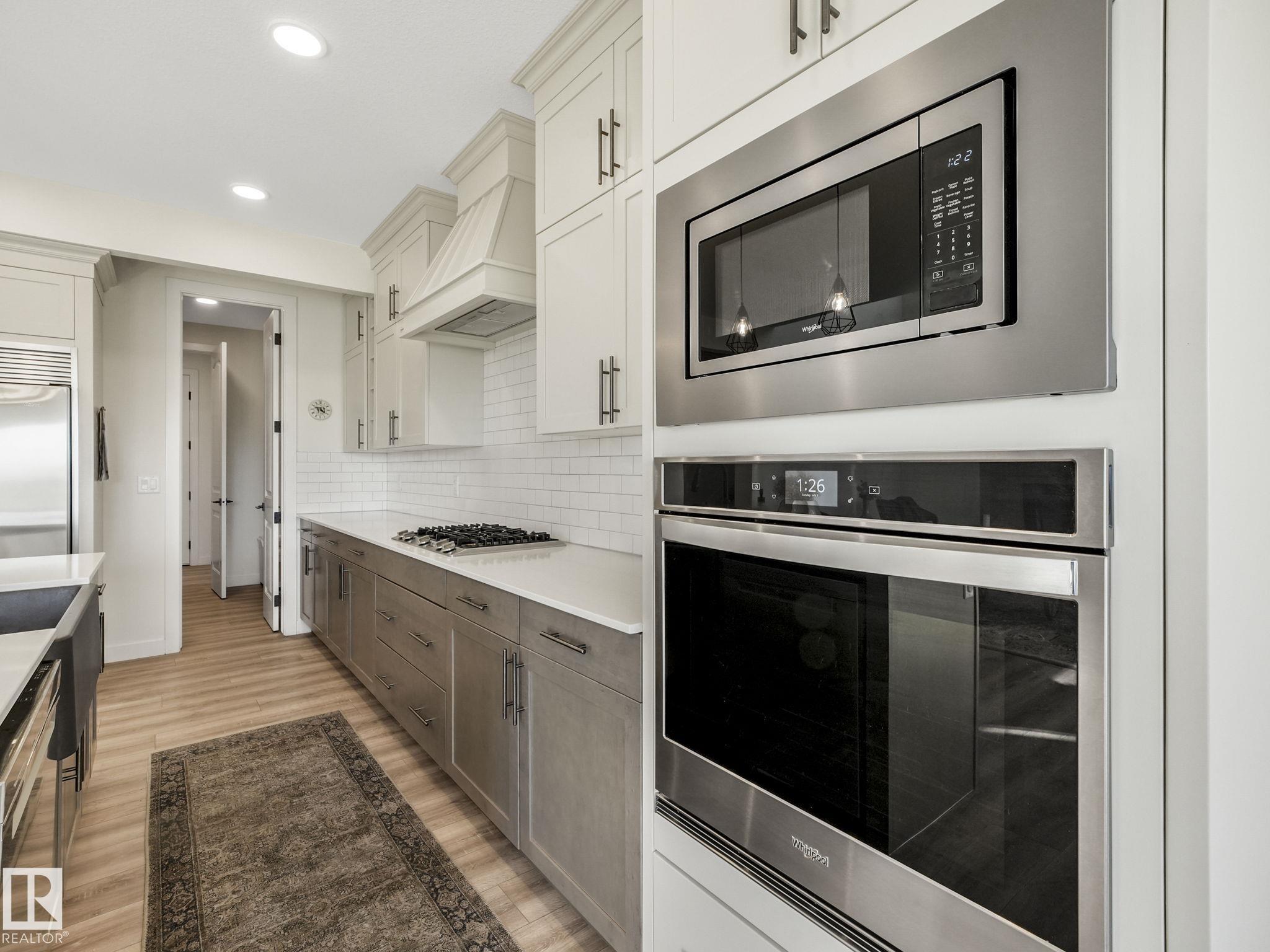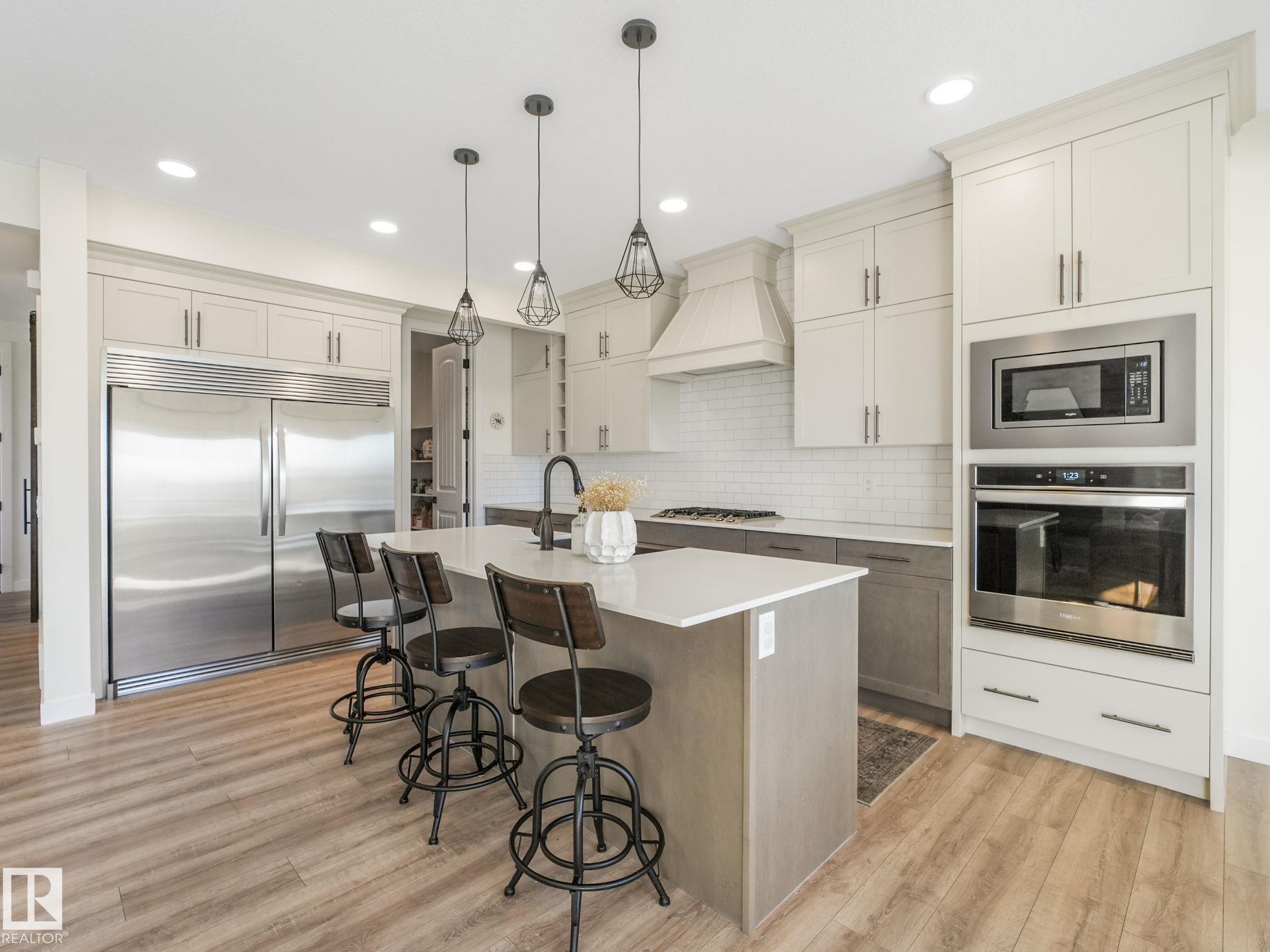 Welcome to Beaumont! This custom-built & fully finished home boasts almost 2800 sq ft over 3 upper levels on a massive 9,000 sq ft pie lot! This 5 bed, 3.5 bath beauty offers exceptional design & space. The primary suite occupies its own private third level, featuring a spa-inspired ensuite & walk-in closet and plenty of living space to make this area your own. The main level boasts an open-concept layout with premium appliances, luxury Alberta-made laminate flooring, air conditioning & a cozy gas fireplace with custom mantel. The fully finished basement adds even more living space for family or guests which includes the 5th bedroom, family room (close to 800 additional square feet). Outside, enjoy a $50,000 professionally landscaped yard with new deck, garden beds, flower boxes & over 2 dozen fruit trees?your own backyard retreat! The extended garage provides ample storage. Situated on a quiet street near parks, walking paths, schools & amenities?this is the one you?ve been waiting for. Welcome home!