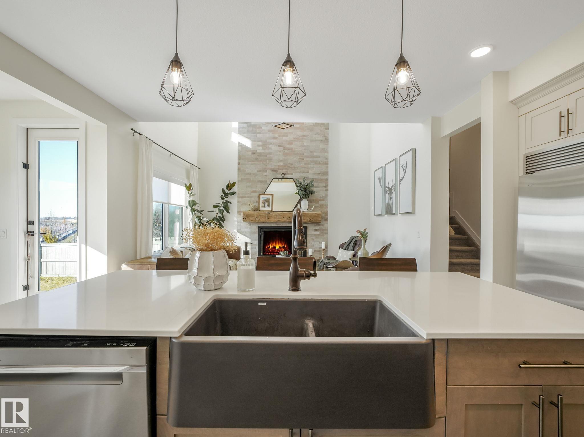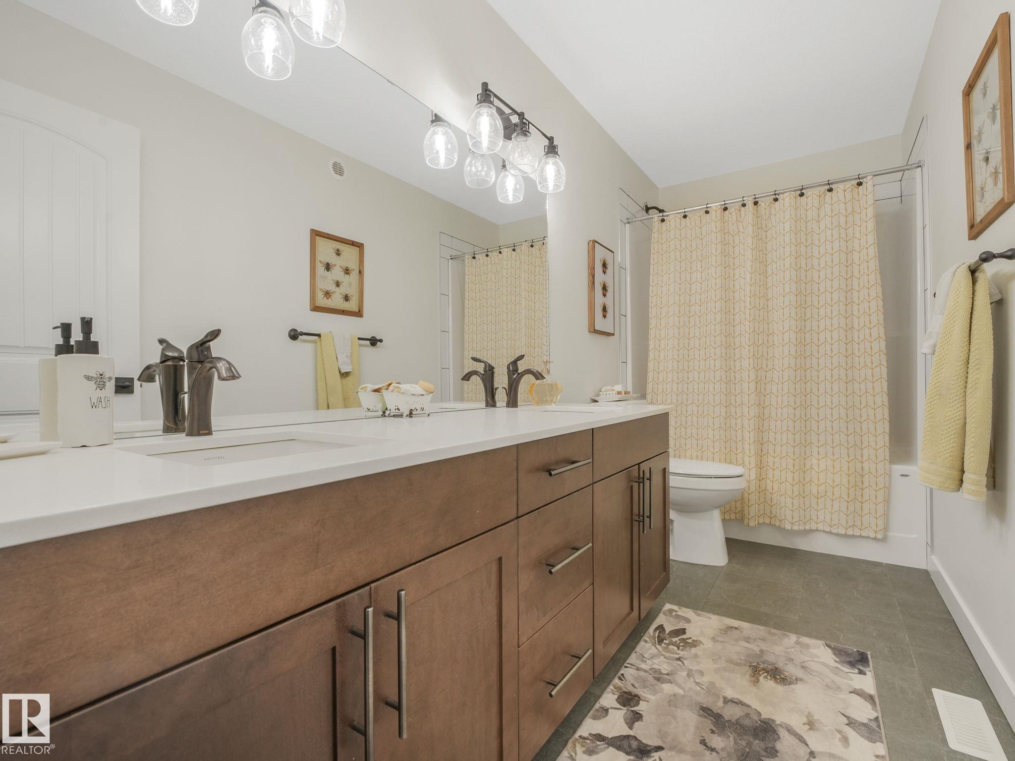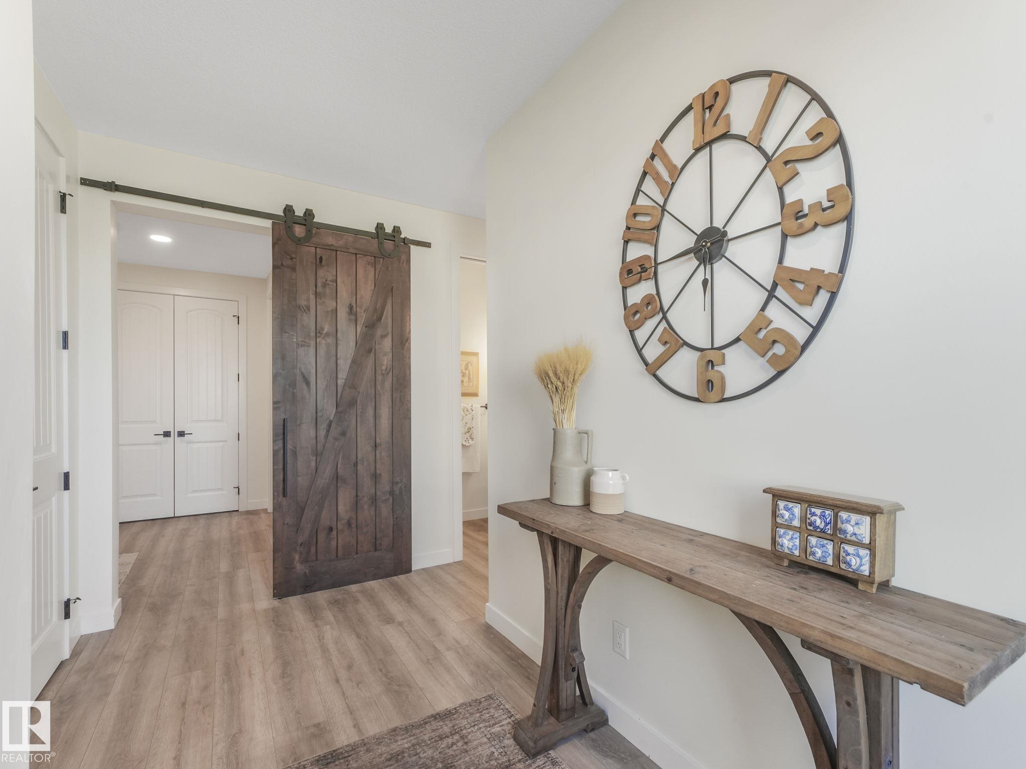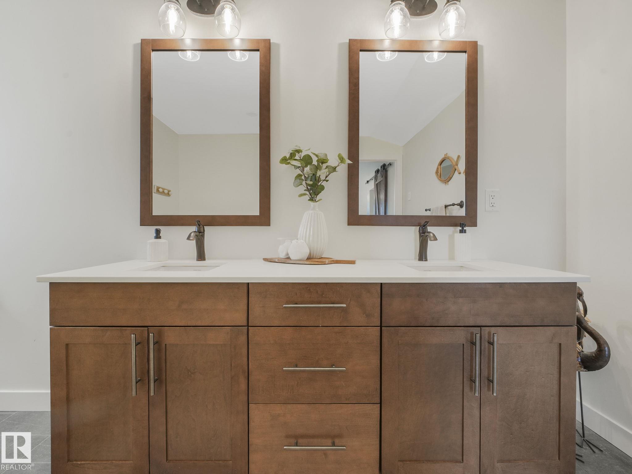 Welcome to Beaumont! This custom-built & fully finished home boasts almost 2800 sq ft over 3 upper levels on a massive 9,000 sq ft pie lot! This 5 bed, 3.5 bath beauty offers exceptional design & space. The primary suite occupies its own private third level, featuring a spa-inspired ensuite & walk-in closet and plenty of living space to make this area your own. The main level boasts an open-concept layout with premium appliances, luxury Alberta-made laminate flooring, air conditioning & a cozy gas fireplace with custom mantel. The fully finished basement adds even more living space for family or guests which includes the 5th bedroom, family room (close to 800 additional square feet). Outside, enjoy a $50,000 professionally landscaped yard with new deck, garden beds, flower boxes & over 2 dozen fruit trees?your own backyard retreat! The extended garage provides ample storage. Situated on a quiet street near parks, walking paths, schools & amenities?this is the one you?ve been waiting for. Welcome home!