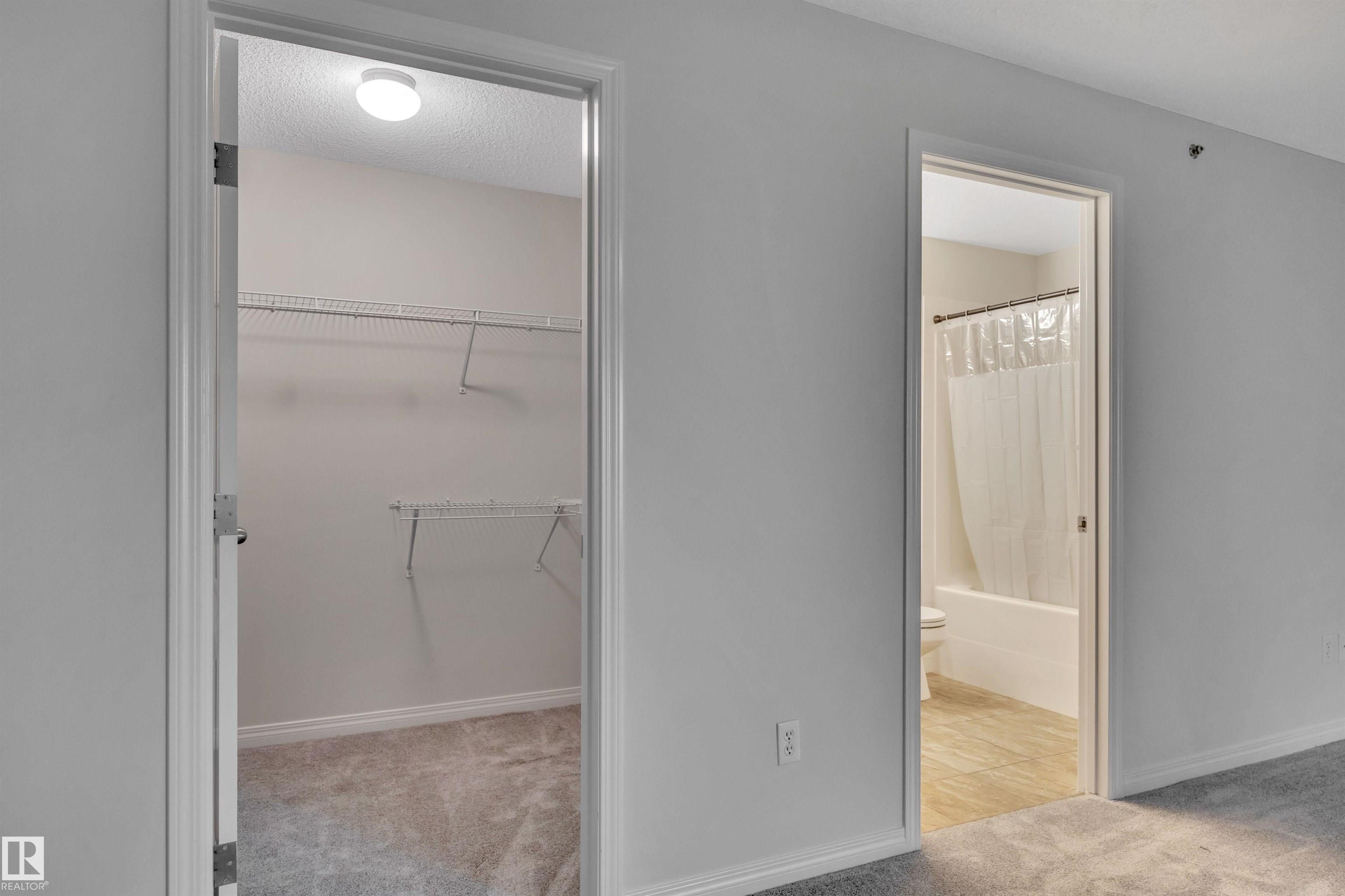 Welcome to Park Place Terwillegar Terrace! This updated and exceptionally maintained top-floor 3 bedroom condo, with 2 parking stalls, is available for immediate possession. Recent updates include new carpet, lighting, and fresh paint throughout. The spacious entryway welcomes you into the open concept living space. Enjoy cooking in your updated kitchen with stainless steel appliances and adjoining oversized walk-in pantry/utility room. Relax with family and friends in the large living room and on the NE-facing balcony... on the quiet side of the building. The primary bedroom offers a 4-piece ensuite and walk-in closet, while the 2nd bedroom and 12'x12' den provides ample space for a home office or growing family. Convenience is key with the in-suite laundry and generous storage. Take advantage of the building's fitness centre and ideal location, with prime access to public transit, Anthony Henday, and Windermere. Move-in ready and a must see!