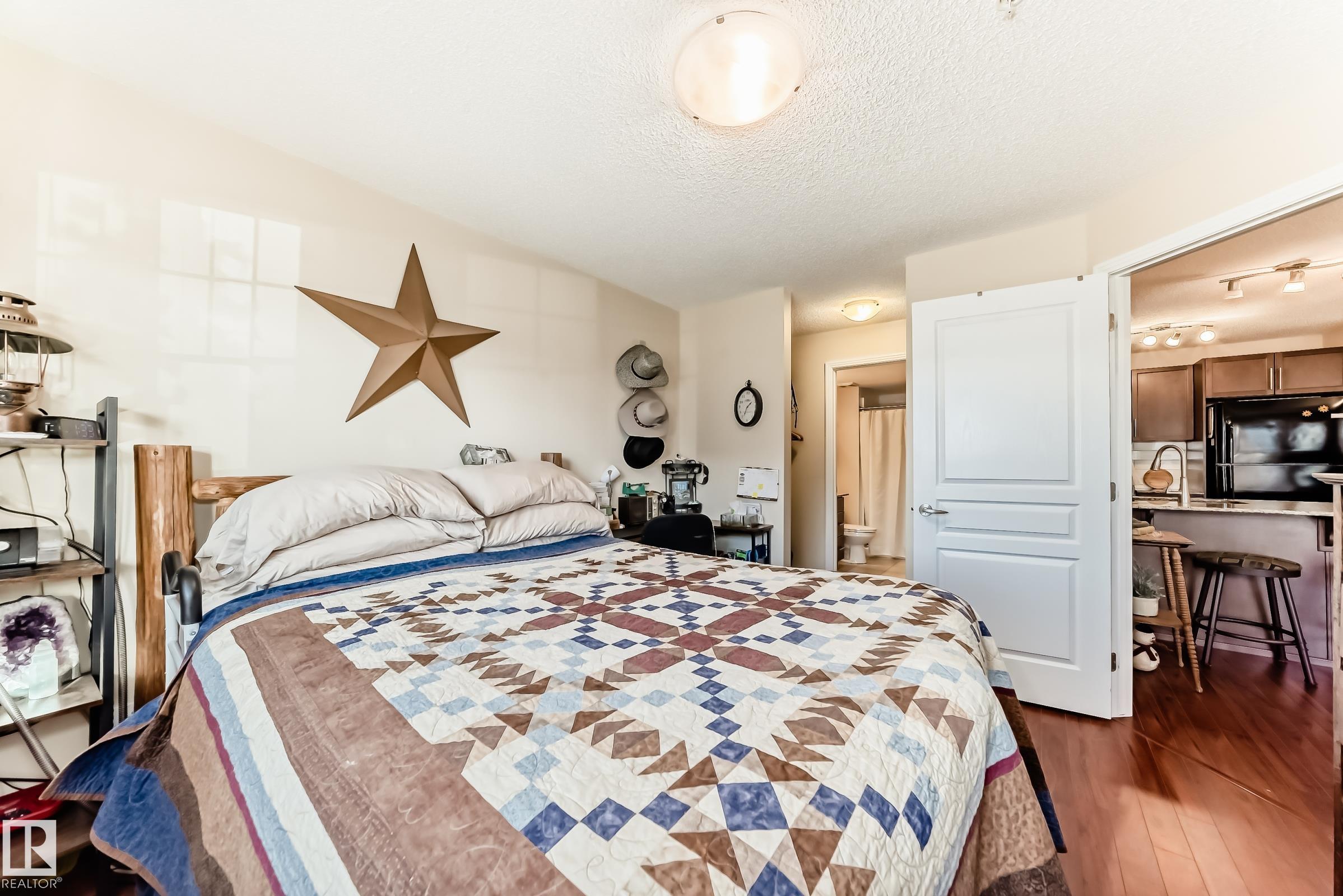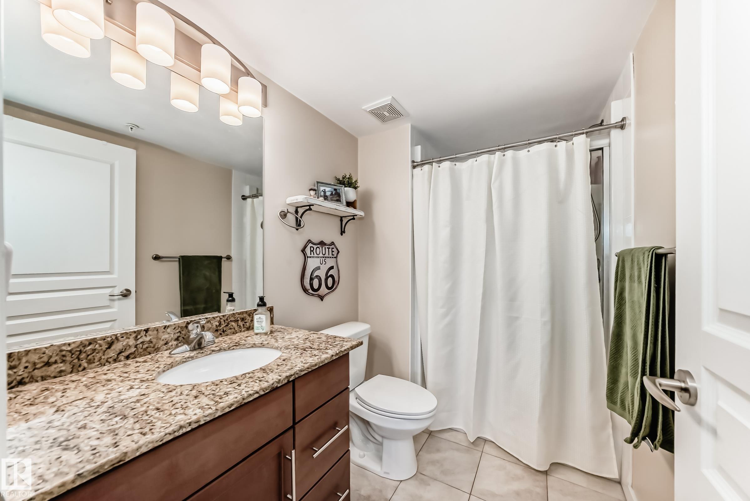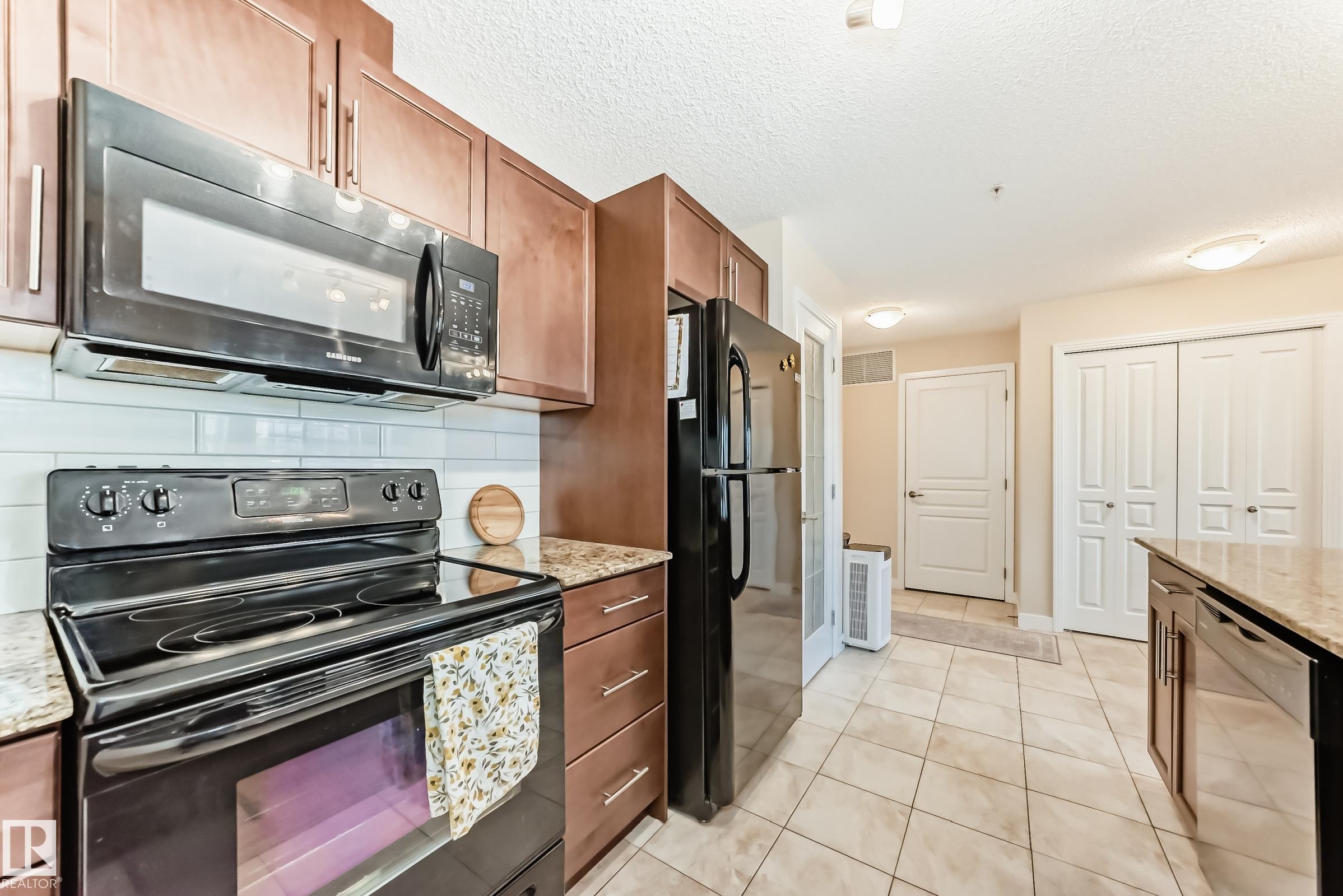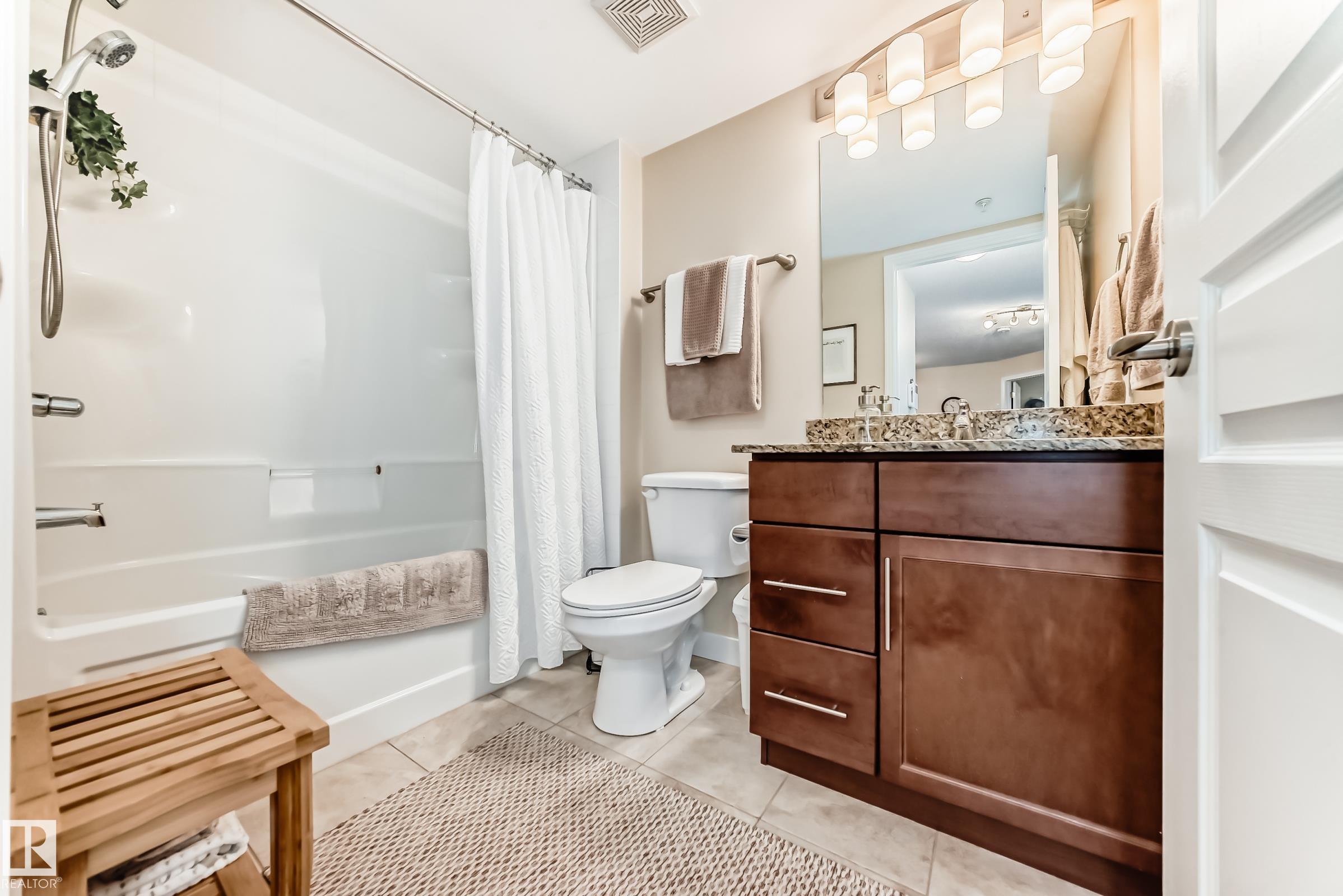 Welcome to Aspen Park Condos! Step inside to this very well maintained 2 bedroom, 2 bath situated on the main floor near the front entrance. The unit offers a functional living space, two good size bedrooms with the primary having a walk-through closet and walk-in shower. The kitchen is finished with granite countertops, tons of cabinet space, ceramic tile flooring and breakfast bar. The laundry room has plenty of space for storage with the unit having A/C roughed in. The west facing patio conveniently has a gate on the railing steps from your titled parking stall. The building also has communal planter boxes and a small fitness area. This location has plenty of shopping, transportation, restaurants, medical services and endless walking paths surrounded by ponds and greenery. Condo fees include heat and water.