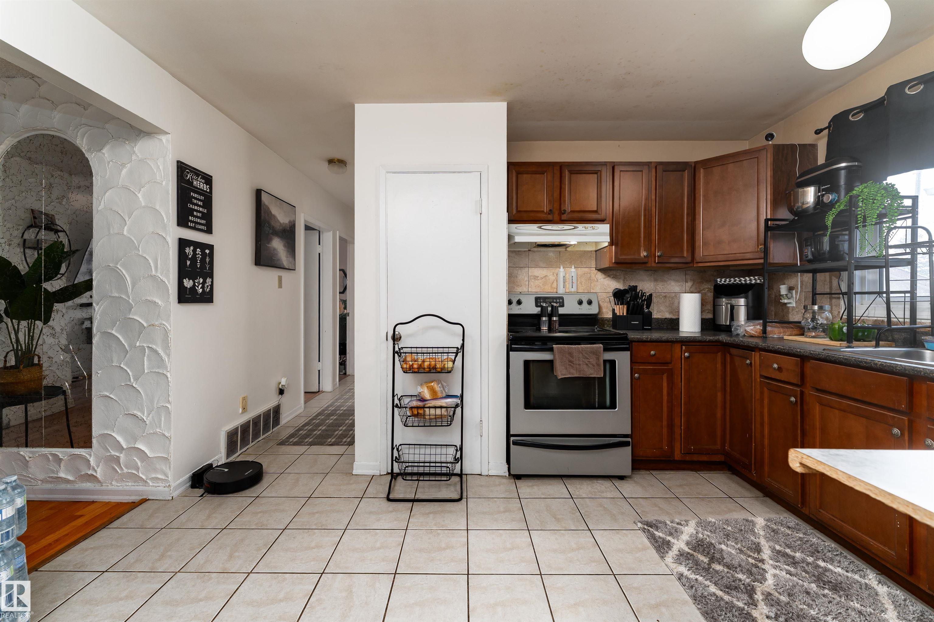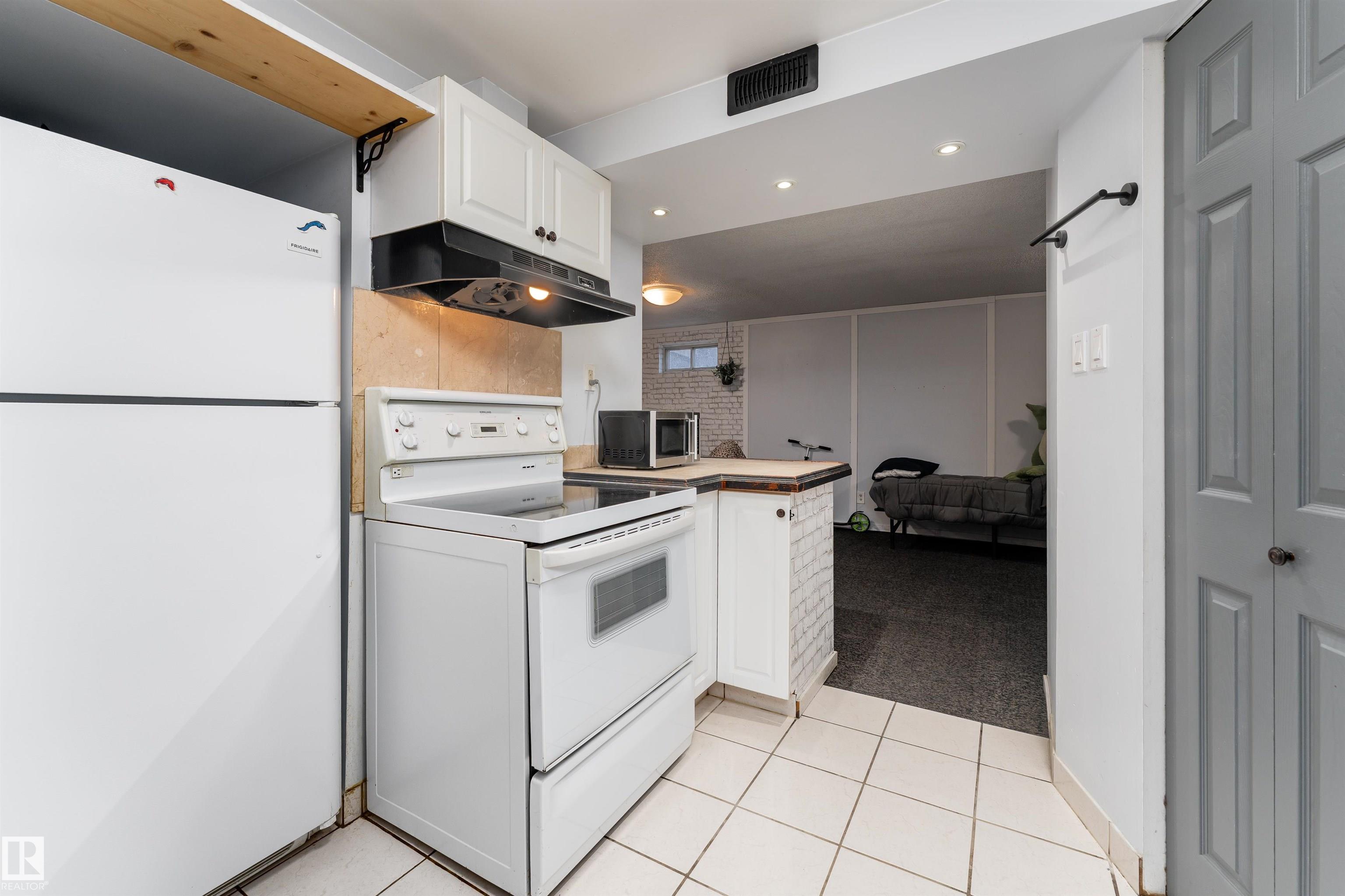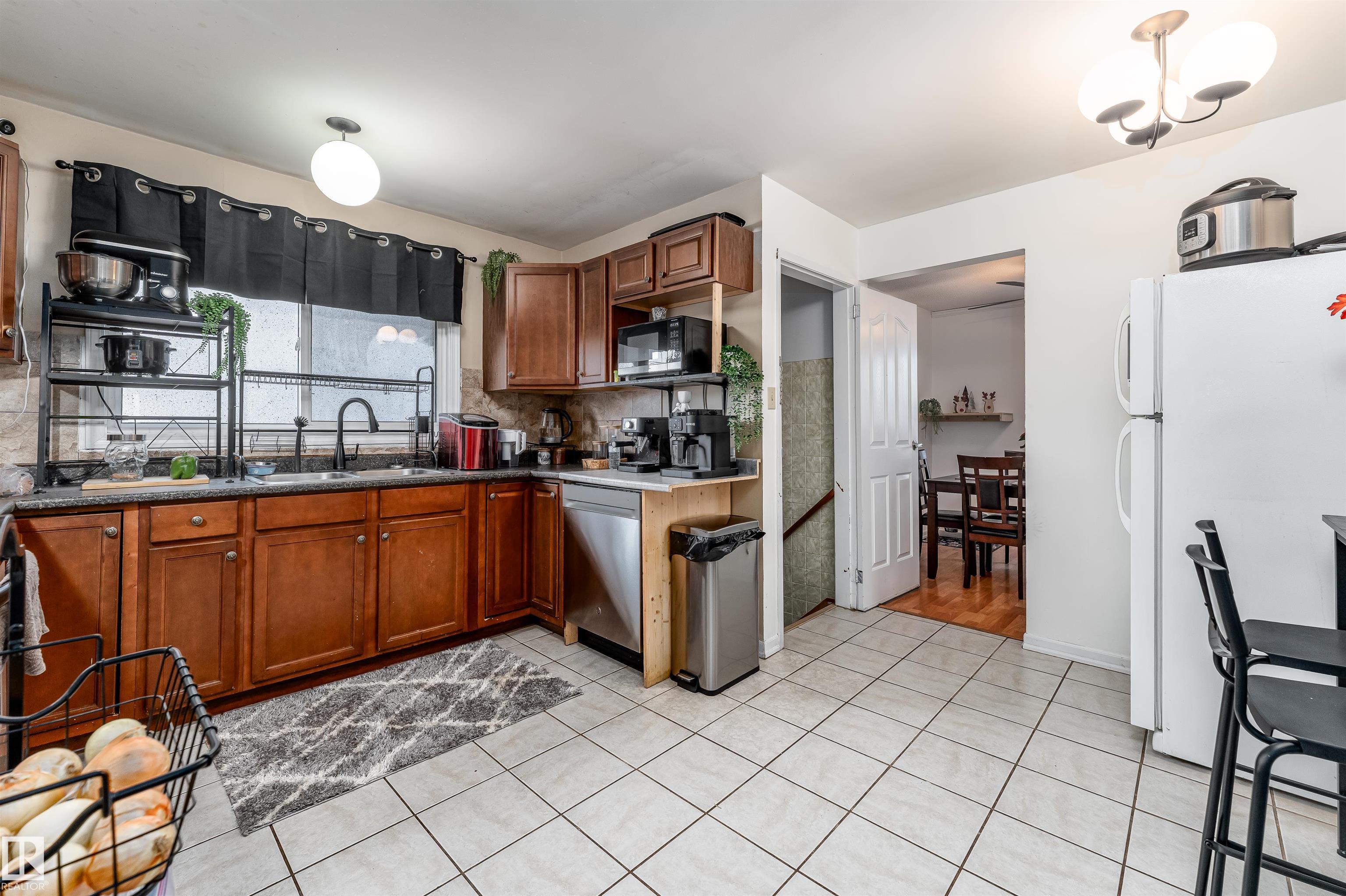 Welcome to this charming 1,011 sq. ft. bungalow situated on a desirable corner lot in Elmwood! The spacious living room features a lovely brick accent wall, while the bright dining area includes a built-in cabinet for extra storage. The kitchen offers plenty of cabinets and a convenient pantry. The main floor also includes three generous bedrooms and a 4-piece bathroom. This home also features a new hot water tank and furnace for added peace of mind. The fully finished basement provides great flexibility ? perfect for an in-law suite or potential income ? featuring a kitchenette, large family room, two additional bedrooms, and another 4-piece bathroom. Enjoy the fully fenced yard with a huge oversized double garage. Ideally located near schools, playgrounds, West Edmonton Mall, and Misericordia Hospital.