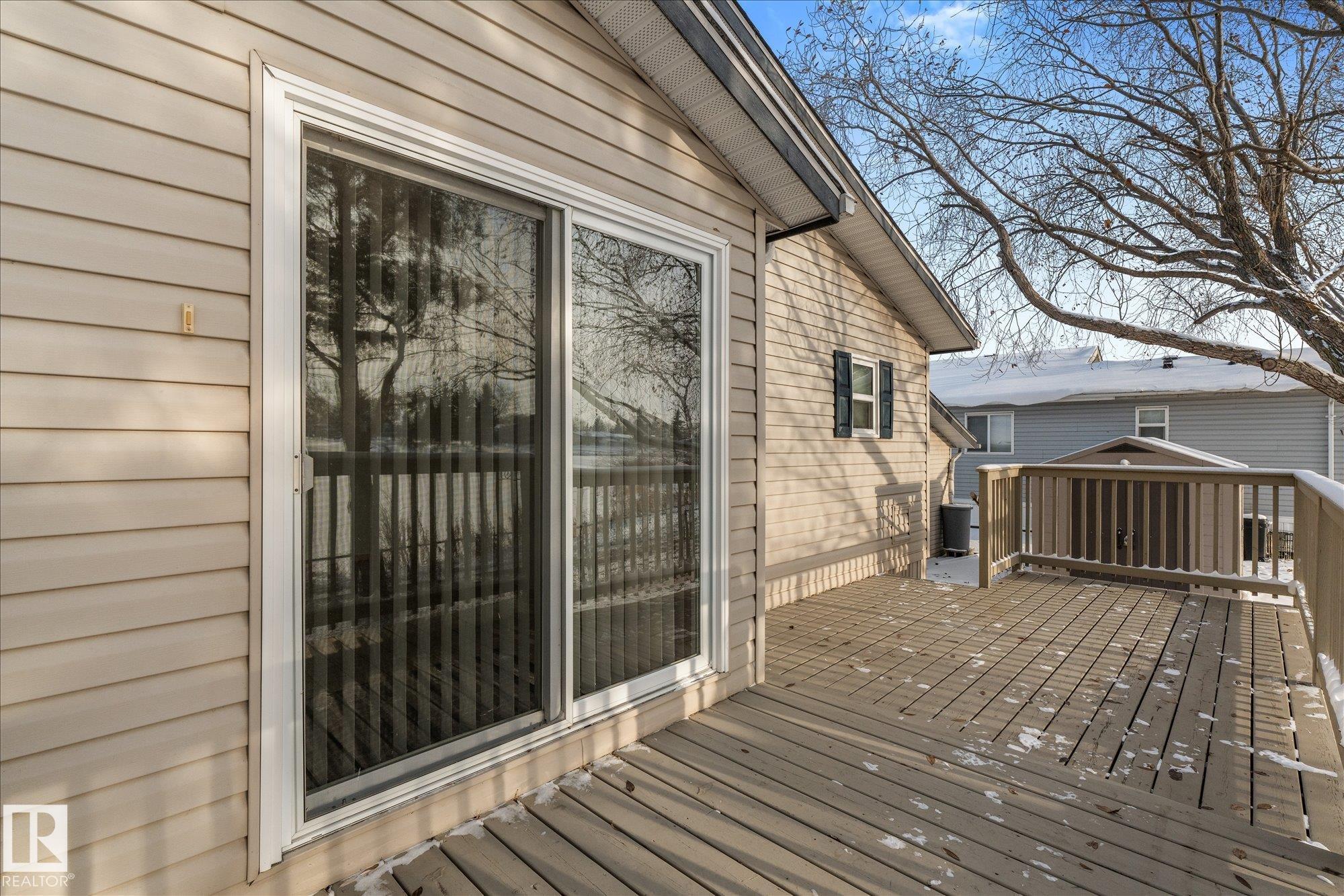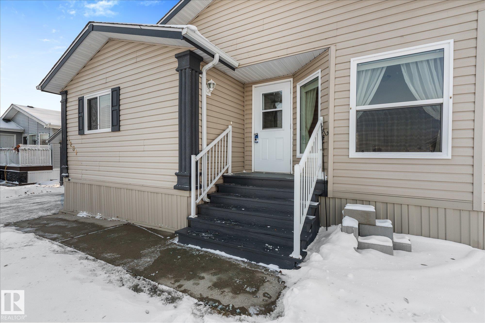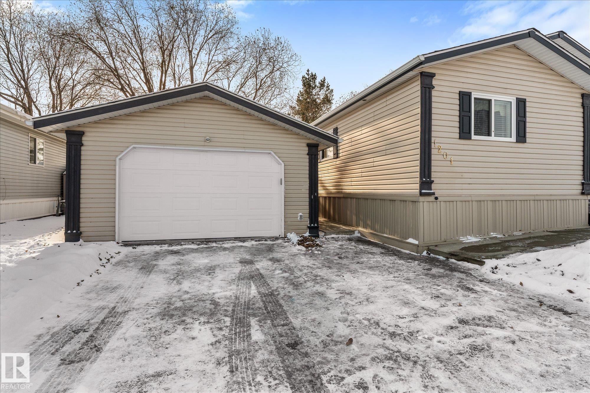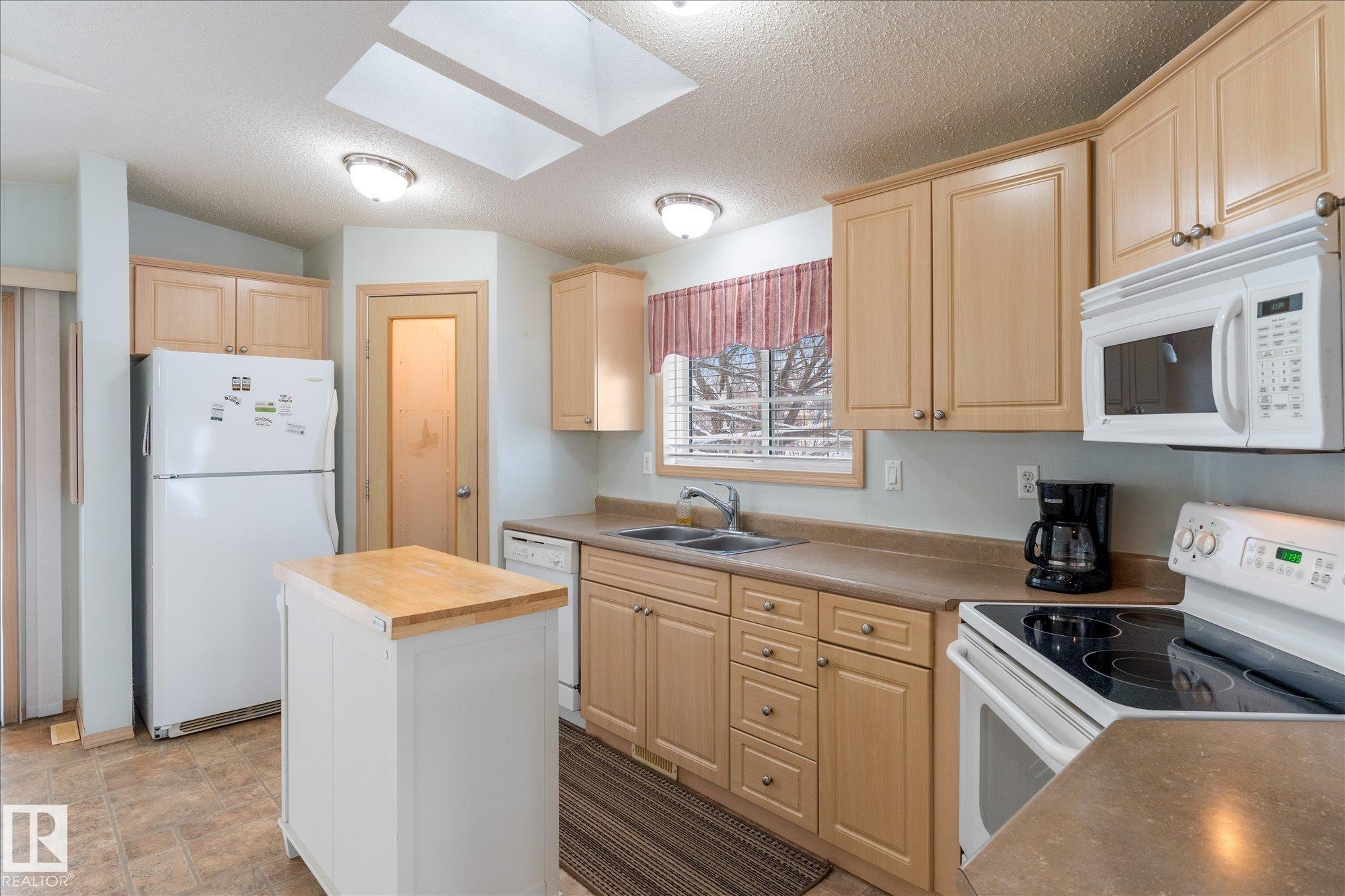 Discover one of the rarest and most desirable lots in Parkland Village with this double wide home set on an exceptional oversized yard backing directly onto the community pond. Properties with this kind of outdoor space, privacy, and natural scenery are few and far between. Enjoy the expansive 10' x 22' back deck overlooking peaceful water views, mature trees, and nearby walking paths. Inside, the 2005 double wide offers a bright, open layout featuring vaulted ceilings, skylights, a spacious kitchen and dining area with ample maple cabinetry and a convenient pantry. The living room?s large windows highlight the scenic setting and provide an inviting backdrop for everyday living. The primary bedroom includes a walk in closet and a private ensuite with an oval jetted tub. Outside, the standout feature is the incredible yard, oversized, partially fenced, and perfectly positioned along the pond. A paved driveway leads to a 24' x 22' detached garage that is insulated and finished inside. All appliances and w