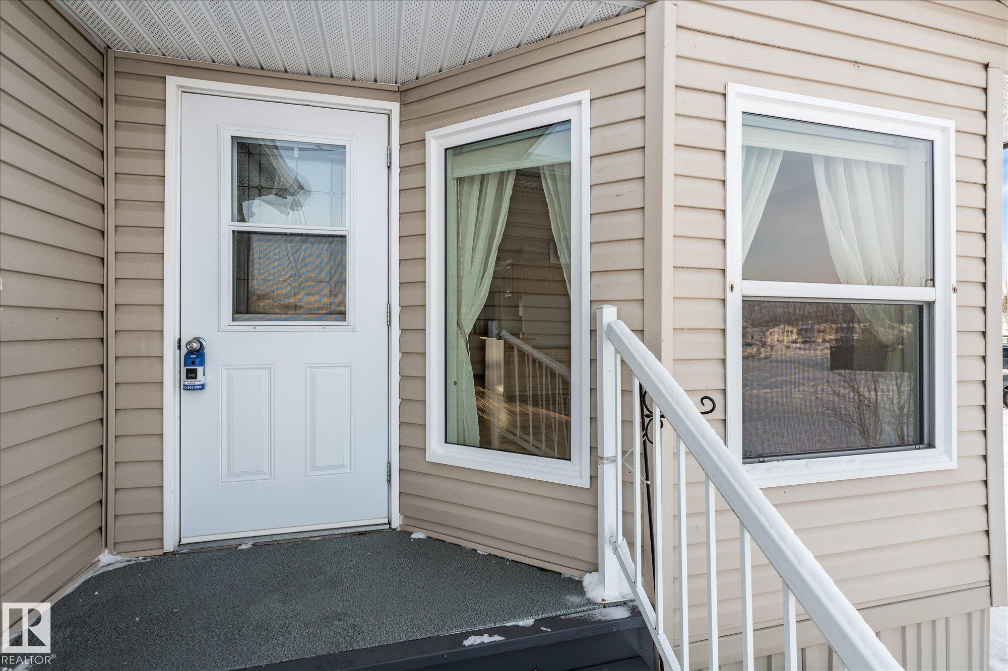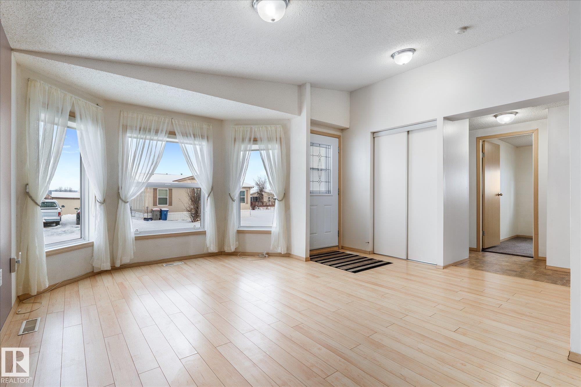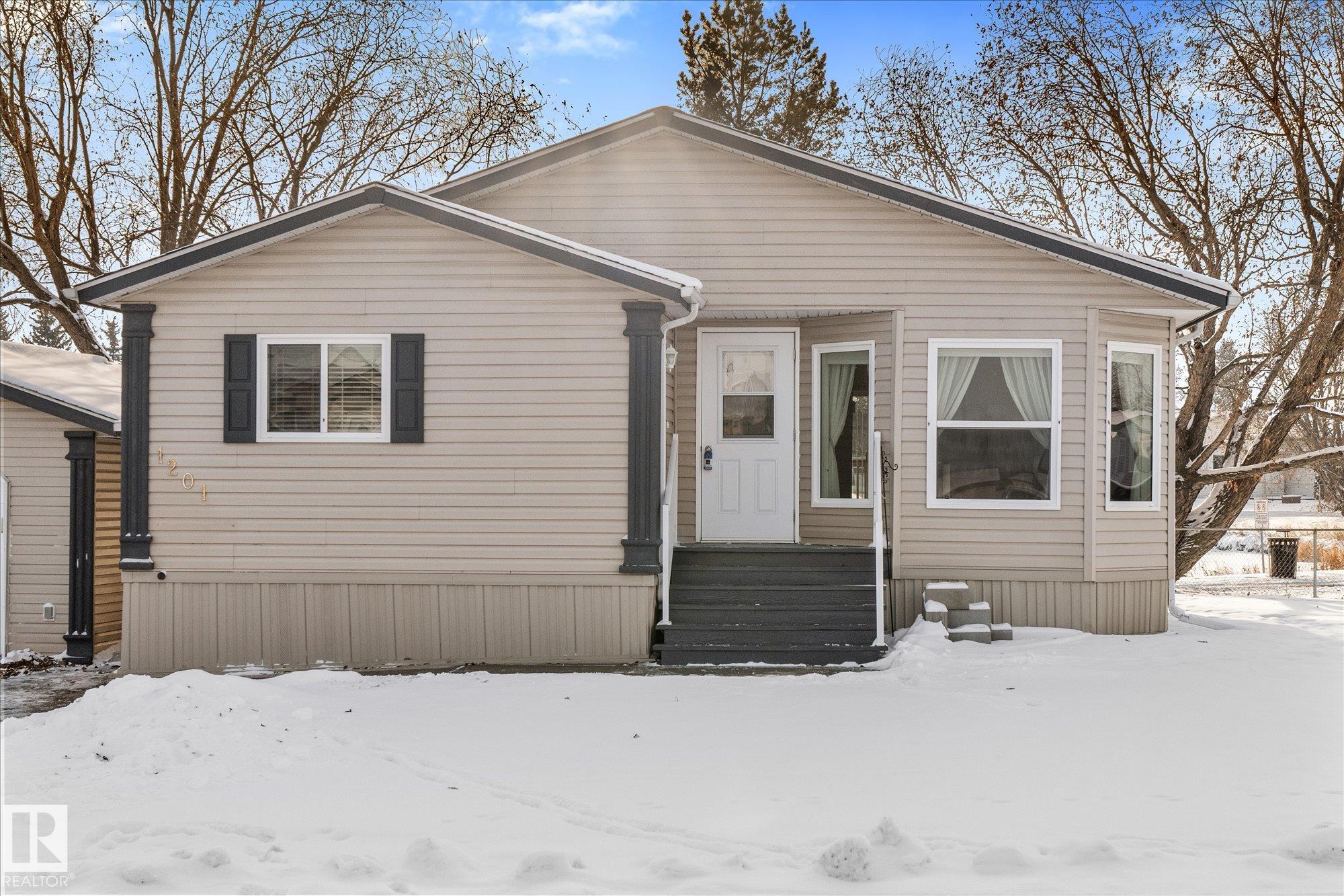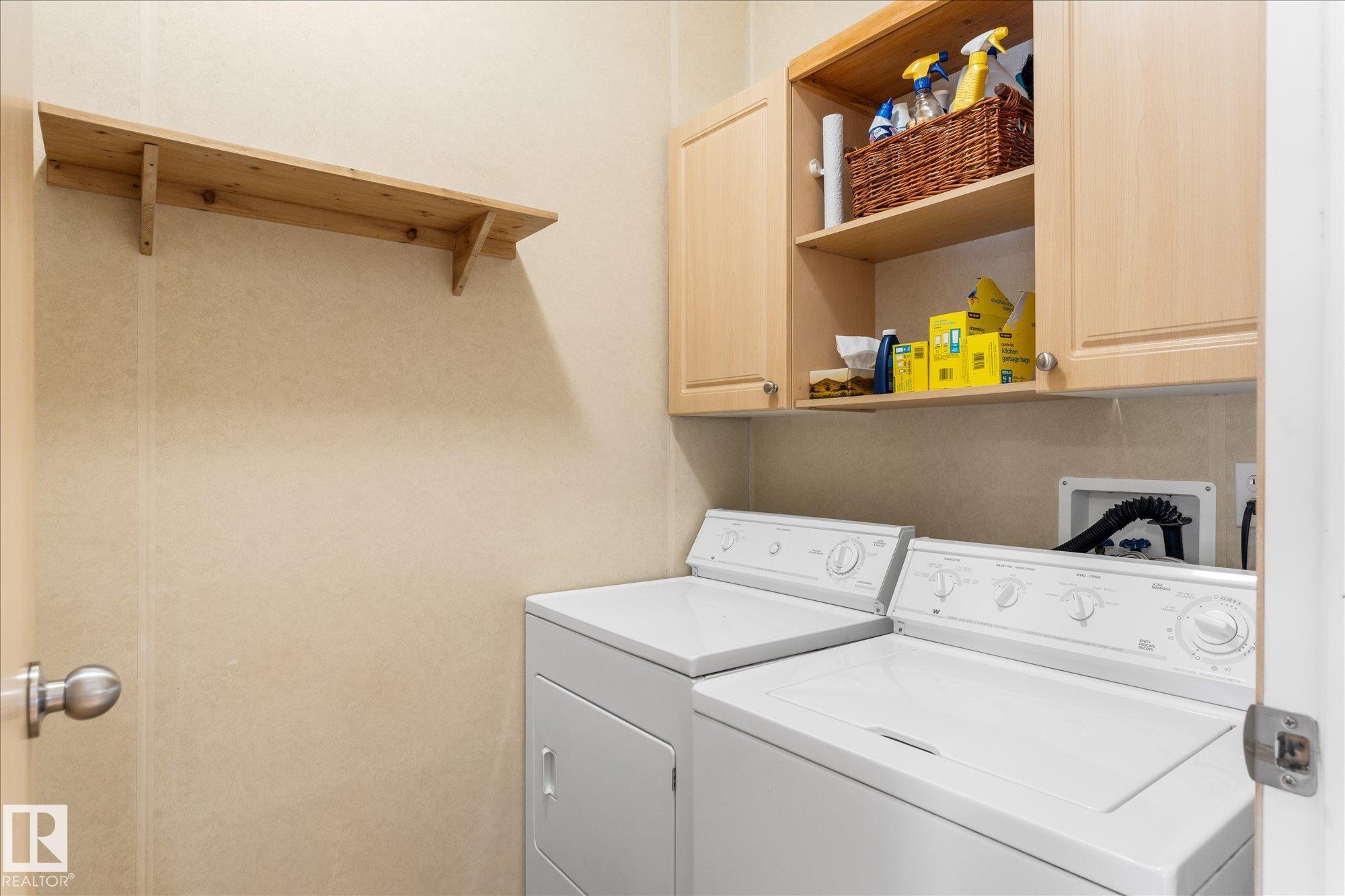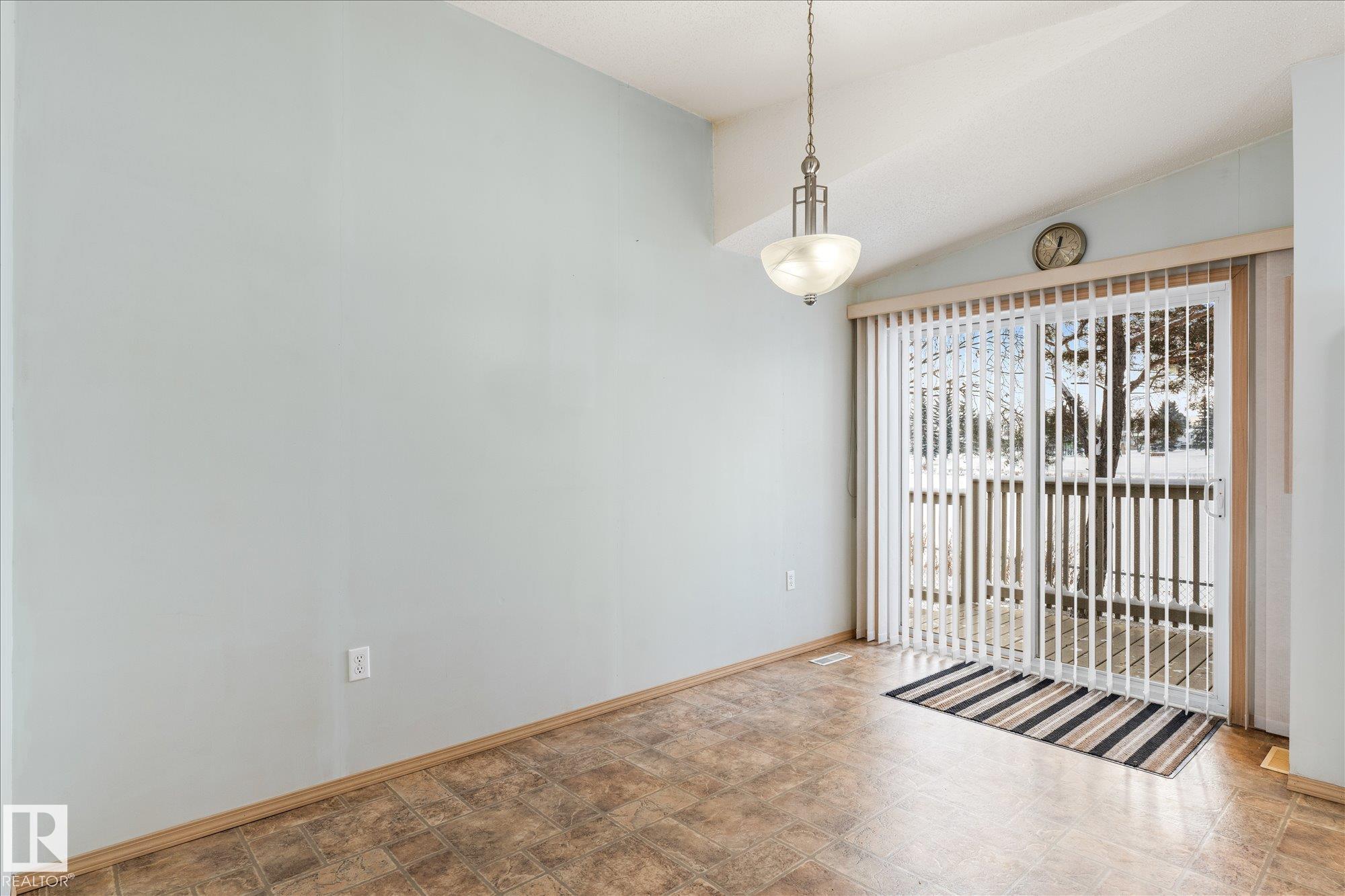 Discover one of the rarest and most desirable lots in Parkland Village with this double wide home set on an exceptional oversized yard backing directly onto the community pond. Properties with this kind of outdoor space, privacy, and natural scenery are few and far between. Enjoy the expansive 10' x 22' back deck overlooking peaceful water views, mature trees, and nearby walking paths. Inside, the 2005 double wide offers a bright, open layout featuring vaulted ceilings, skylights, a spacious kitchen and dining area with ample maple cabinetry and a convenient pantry. The living room?s large windows highlight the scenic setting and provide an inviting backdrop for everyday living. The primary bedroom includes a walk in closet and a private ensuite with an oval jetted tub. Outside, the standout feature is the incredible yard, oversized, partially fenced, and perfectly positioned along the pond. A paved driveway leads to a 24' x 22' detached garage that is insulated and finished inside. All appliances and w